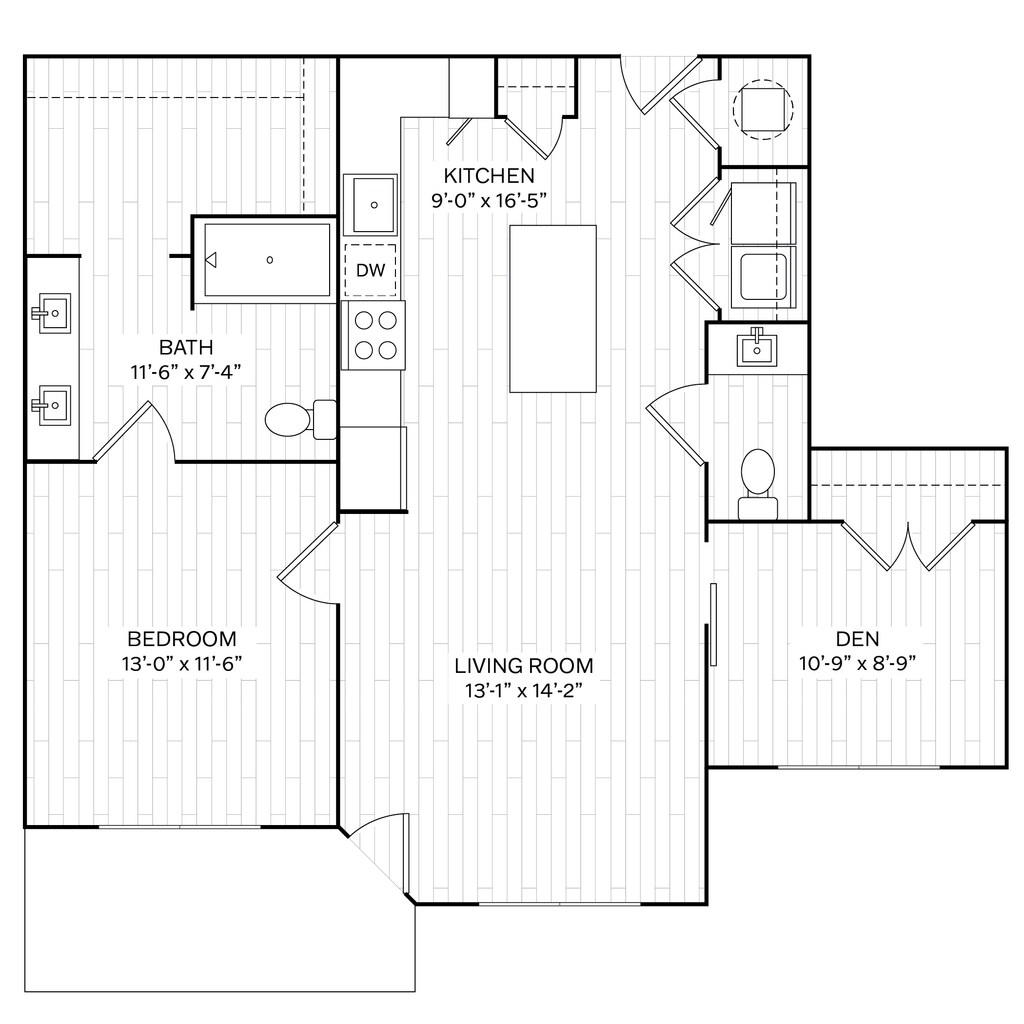 1 Bed, 1 Bath, 727 sq ftAvailable NowModel Gallery