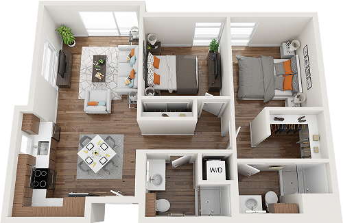 2 Beds, 2 Baths, 1091 sq ftModel Gallery