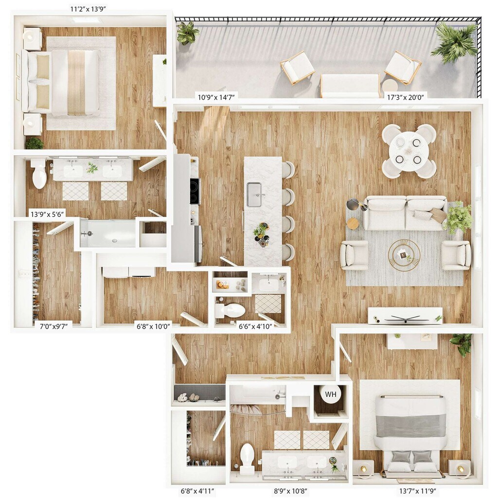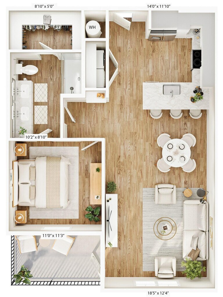 Apartment Model: A3From $1,6991 Bedroom, 1 Bath, 826 sq ftAvailable Now![]()