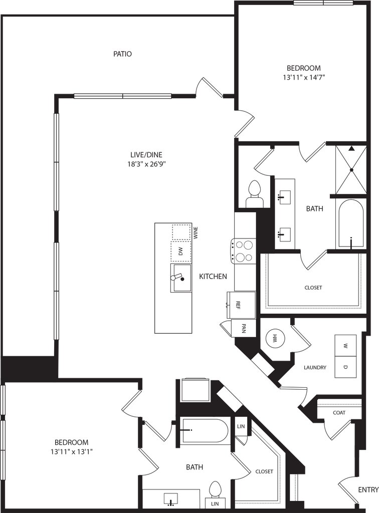 1 Bed, 1 Bath, 711 sq ftAvailable NowModel Gallery