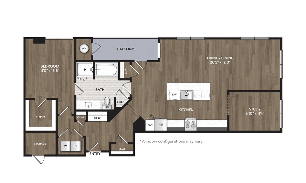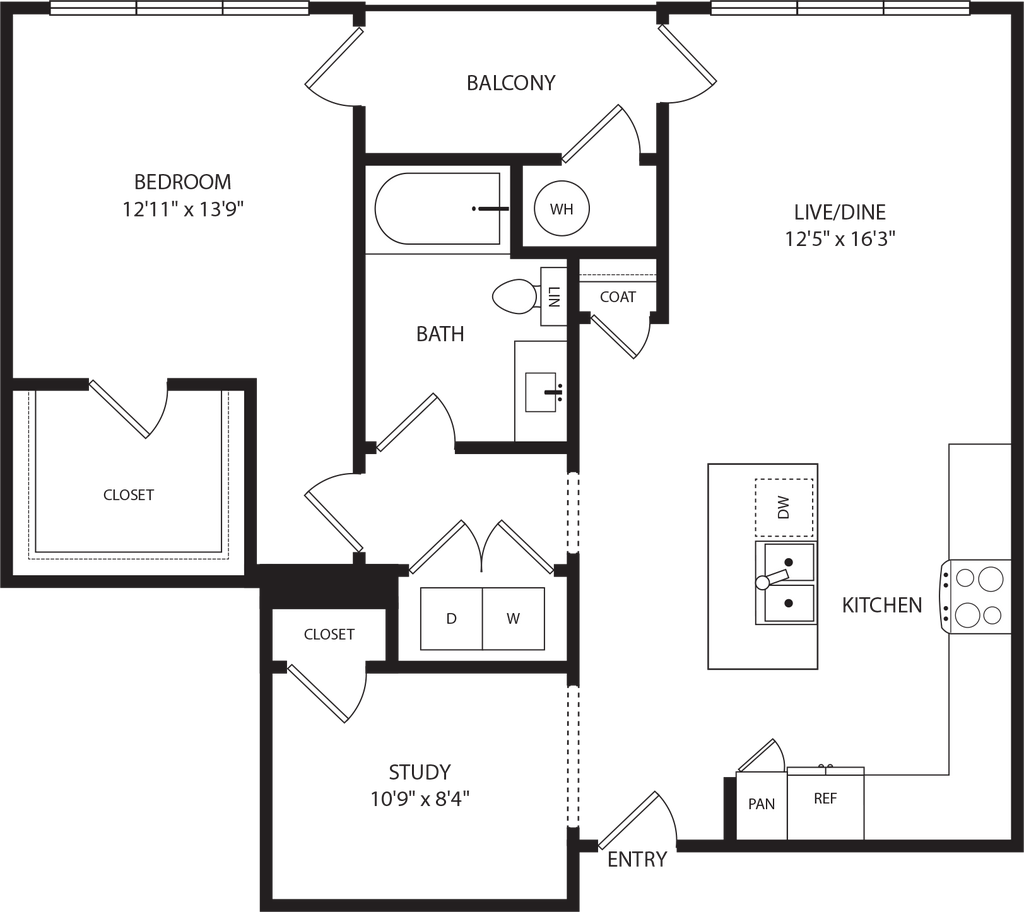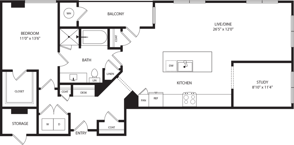 Studio, 1 Bath, 571 sq ftAvailable NowModel Gallery