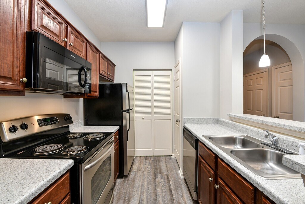 Welcome to The Finley Apartments, where comfort-enhancing features meet top-of-the-line finishes for a unique experience. Add the beautiful lakes and city conveniences surrounding our apartments in Westside Jacksonville, FL, and you will be closer to grasping why our community is the place to be. Pets allowed!. Inside our one, two, and three-bedroom apartments, you will be wrapped in comfort. Stainless-steel appliances, full-size washer & dryer sets, air conditioning, and generous closets are all a given. Besides, the patio/balcony further extends your living space and allows you to enjoy the fresh air and scenery. In addition, select units come with pendant lighting and wood plank vinyl flooring.