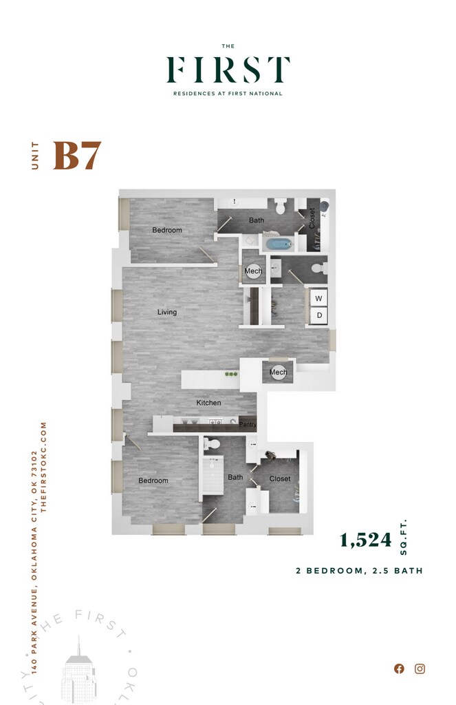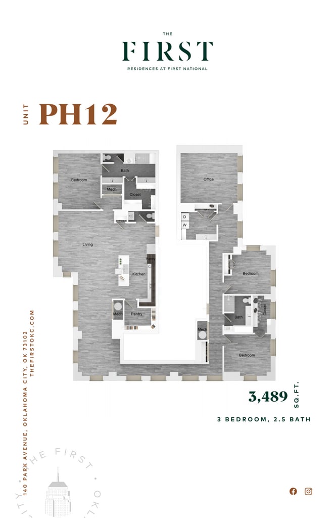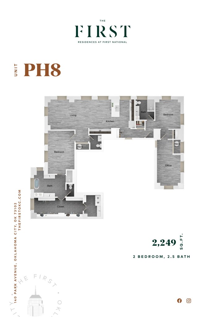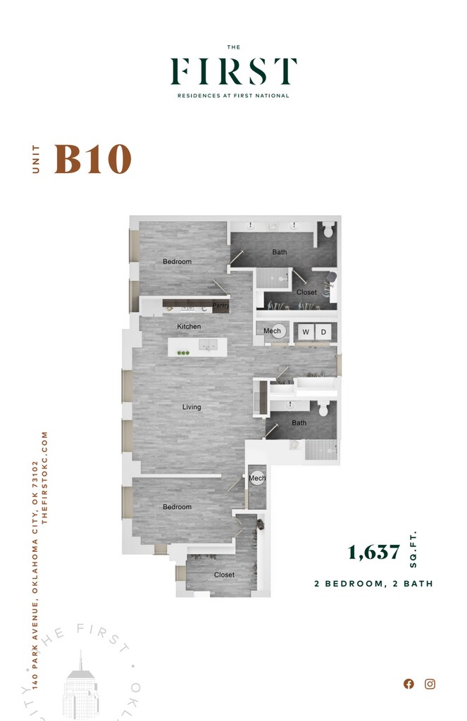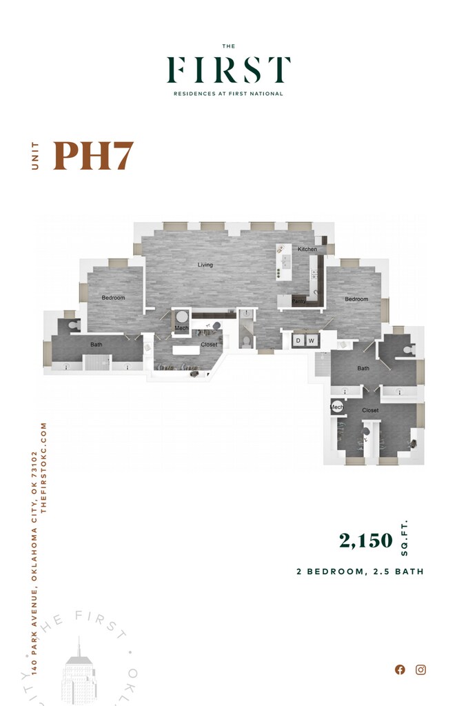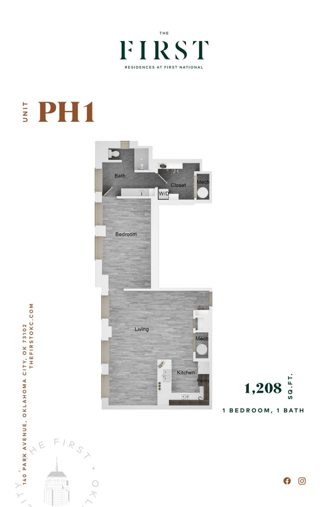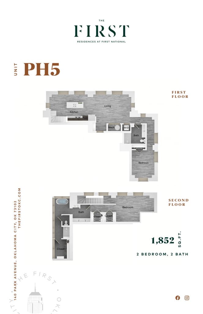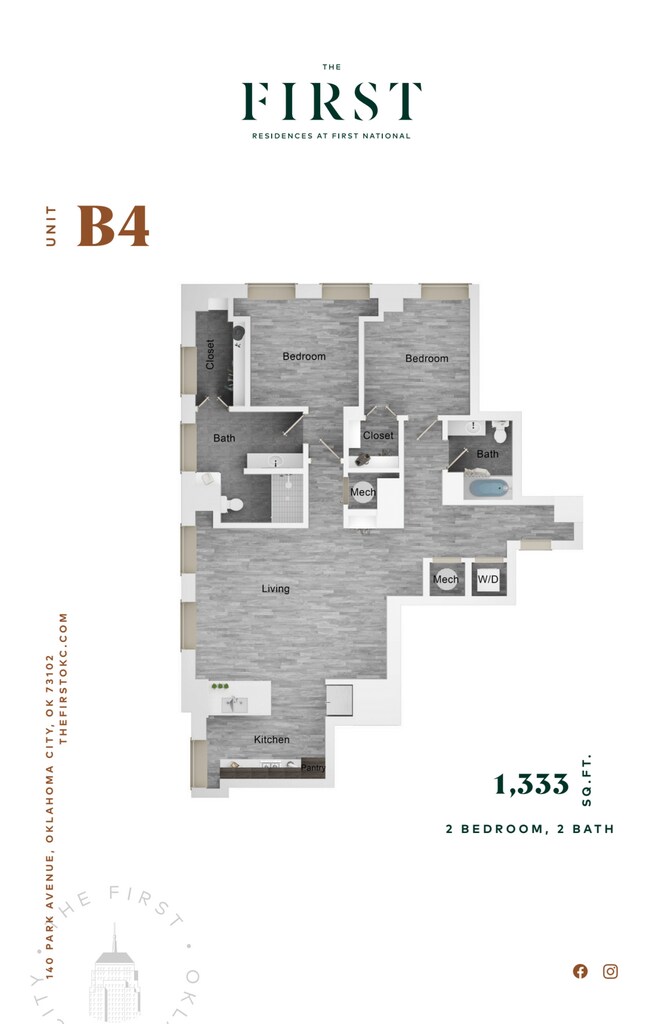 The perfect living experience does exist at The First Residences in Oklahoma City, OK, where premium community amenities, spacious floorplans, and stylish interiors collide. At The First, we know how important comfort and convenience is to our residents. Our apartments are fit for every lifestyle, thanks to our spacious one- and two-bedroom units, studios, and penthouse floorplan options. From our resident-side amenity deck to the more than 1 million square feet of community and living space, The First brings history and luxury to life. Built upon luxury and sophistication, The First Residences are unlike any other apartments for rent in Oklahoma City. Art, history, and elegance combine to create an iconic living space in the heart of downtown. Articulately located within the First National Center, our opulent apartment homes are tied to the area’s rich history. Community Amenities: State-of-the-art fitness center, virtual fitness center, luxury hotel rooms for visitors, meeting rooms, gourmet restaurants, upscale bars, 14-story parking garage, high end shopping experiences, rooftop amenity deck with bark parks and seating, rooftop amenity deck with heated infinity pool*, cabanas, and outdoor kitchen, cyber lounge, social lounge, dog wash salon, valet & concierge services, short-term housing available, corporate housing available Residential Amenities: Over 1 million square feet of space, original marble in the front entry doors, spacious customizable walk-in closets, backlit LED vanity mirrors, latch keyless entry system, soft close cabinet doors and drawers, soft close toilet seats, dual climate control*, striking skyline views, roller shades ceiling fans in living room and bedroom(s), ceramic wood plank flooring, gourmet kitchen appliances, designer faucets, under mounted cabinet lighting, full size washer and dryer, stainless steel french door refrigerators, spa inspired walk-in showers