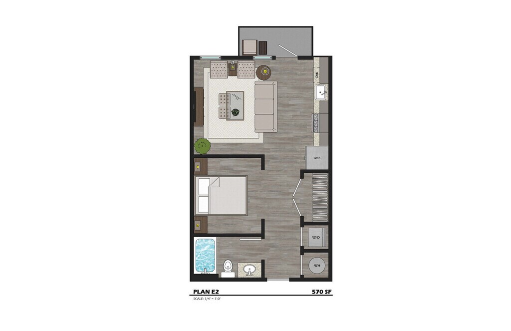 Apartment Model: E2 with yardFrom $1,1951 Bedroom, 1 Bath, 570 sq ftAvailable Now![]()
