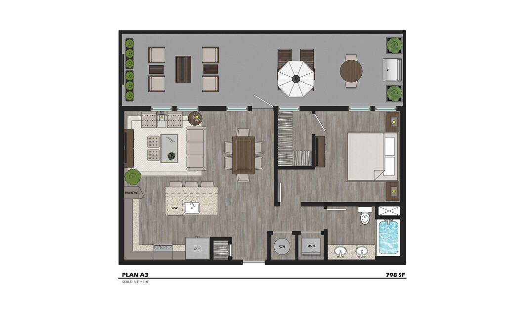 Apartment Model: A3From $1,5501 Bedroom, 1 Bath, 798 sq ftAvailable NowFloorplansPhotos![]()