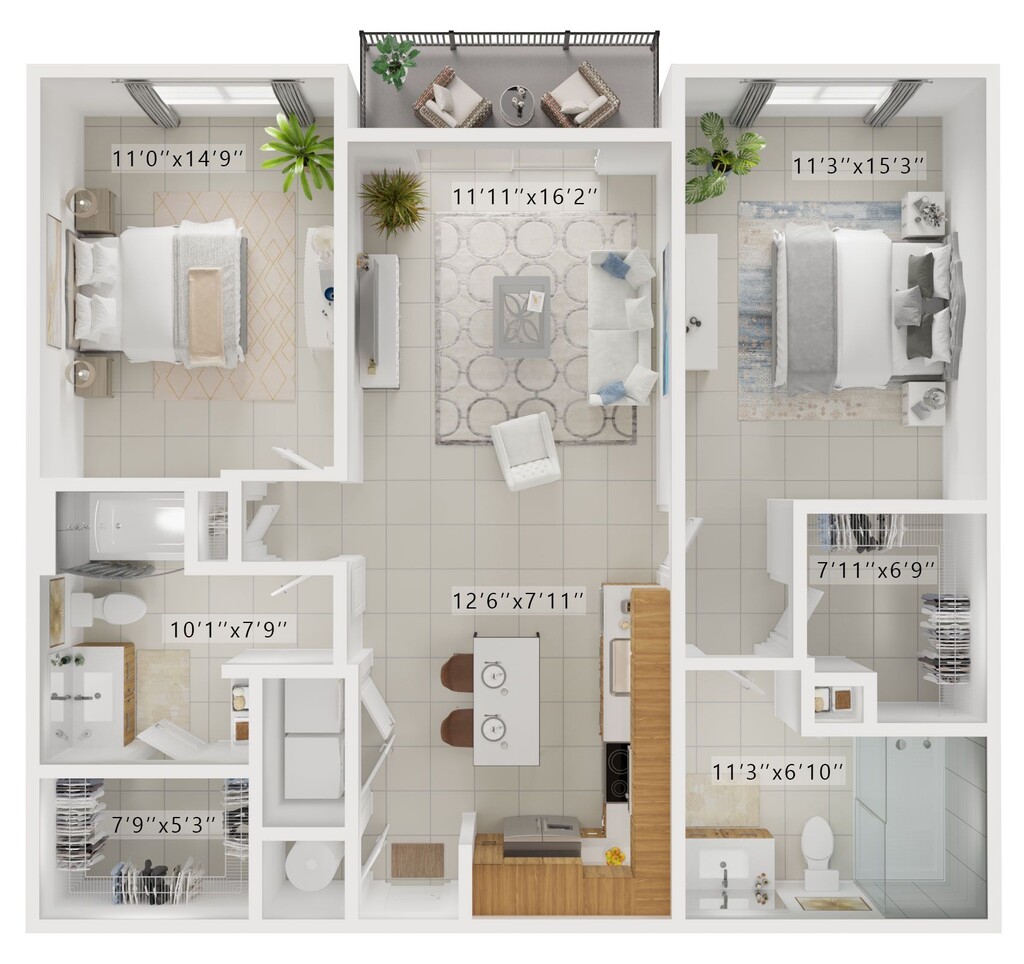 2 Beds, 2 Baths, 1001 sq ftAvailable NowModel Gallery