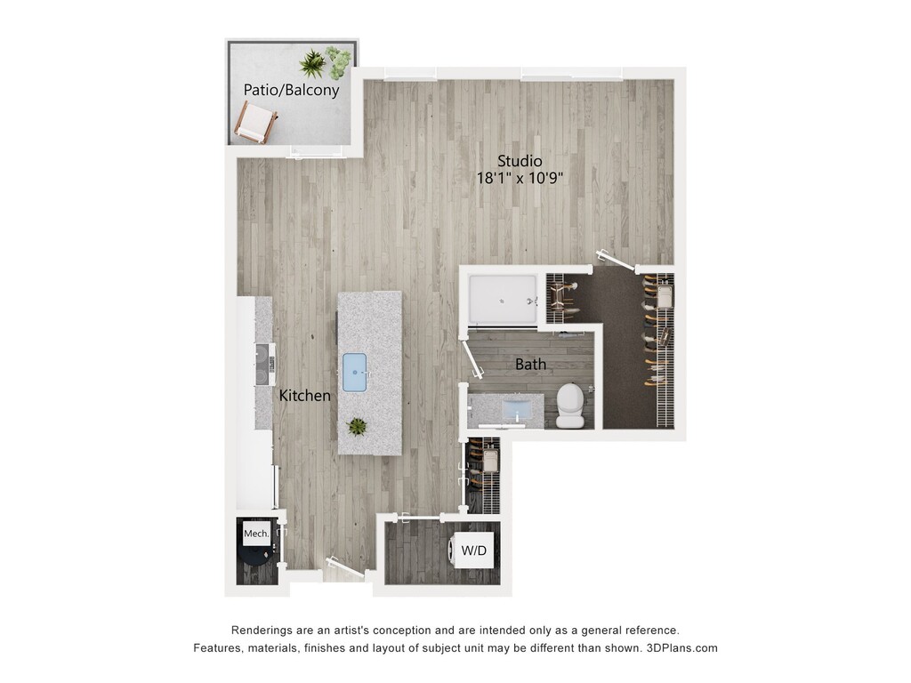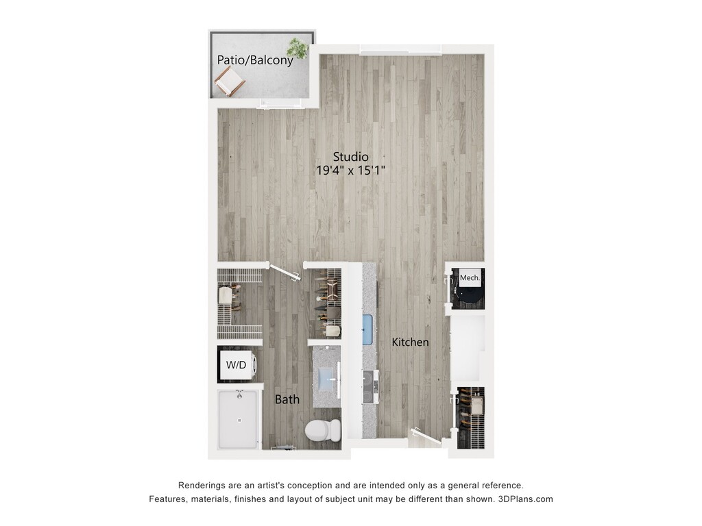 Studio, 1 Bath, 522 sq ftAvailable NowModel Gallery