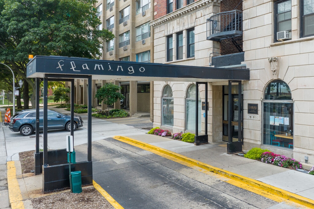 This historic and architecturally-stunning building is conveniently located steps from Lake Michigan and just minutes from downtown Chicago in the Hyde Park neighborhood. The Flamingo Apartments offers unique studio, convertible, one-bedroom and two-bedroom apartments with breathtaking views of the lake and downtown. For added value, the Flamingo also has a restaurant & bar located on the ground level.