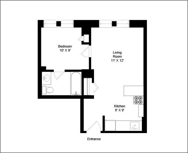 Studio Floor Plan S1 - Floorplan 1 Apartment Unit: 1109Apartment Model: Studio Floor Plan S1$1,280Studio, 1 Bath, 340 sq ftAvailable November 6, 2025Studio Floor Plan S5