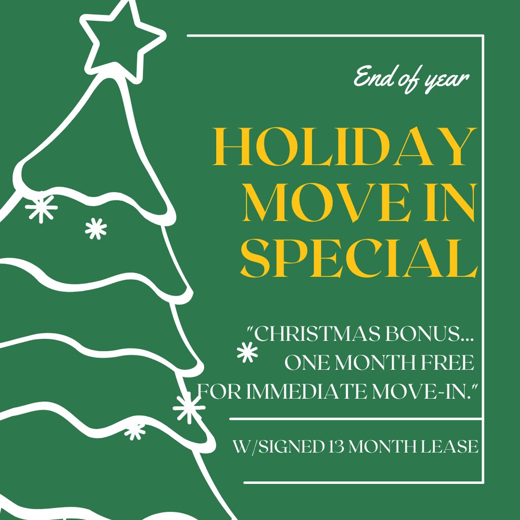 The current rent special at The Flats is: "Christmas bonus... one month free for immediate move in".