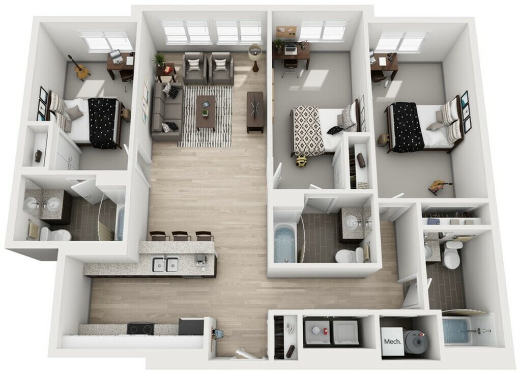 3 Beds, 3 Baths, 1356 sq ftLargest 3 BedroomThis is the largest 3 Bedroom at this PropertyModel Gallery