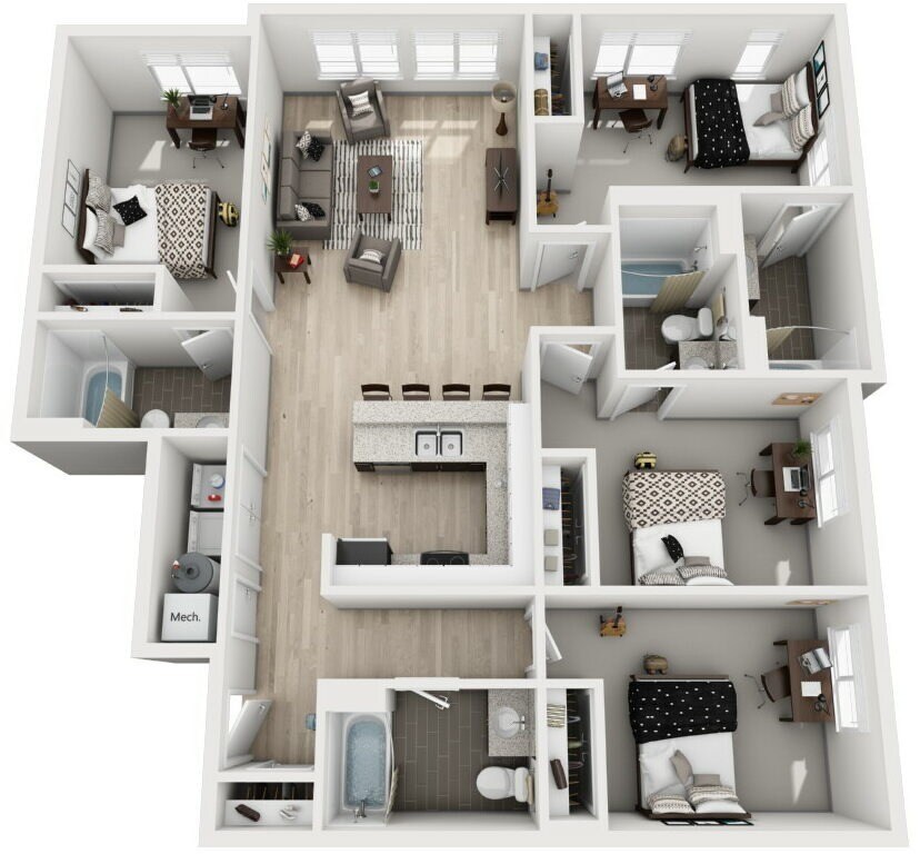 4 Beds, 4 Baths, 1264 sq ftModel Gallery