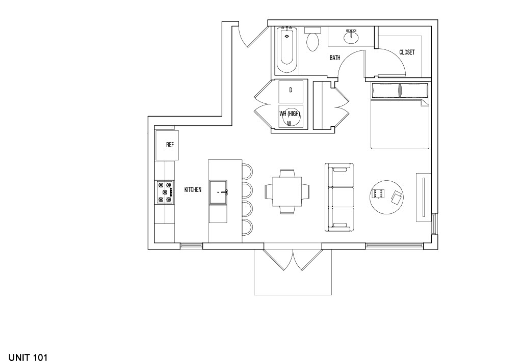 STU - Floorplan 11 Apartment Unit: 101Apartment Model: STUStudio, 1 Bath, 524 sq ftAvailable NowFloorplan STU