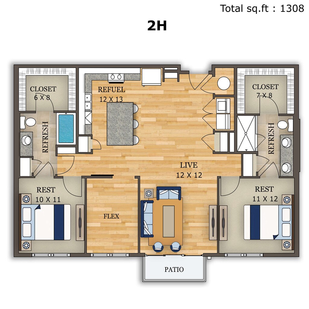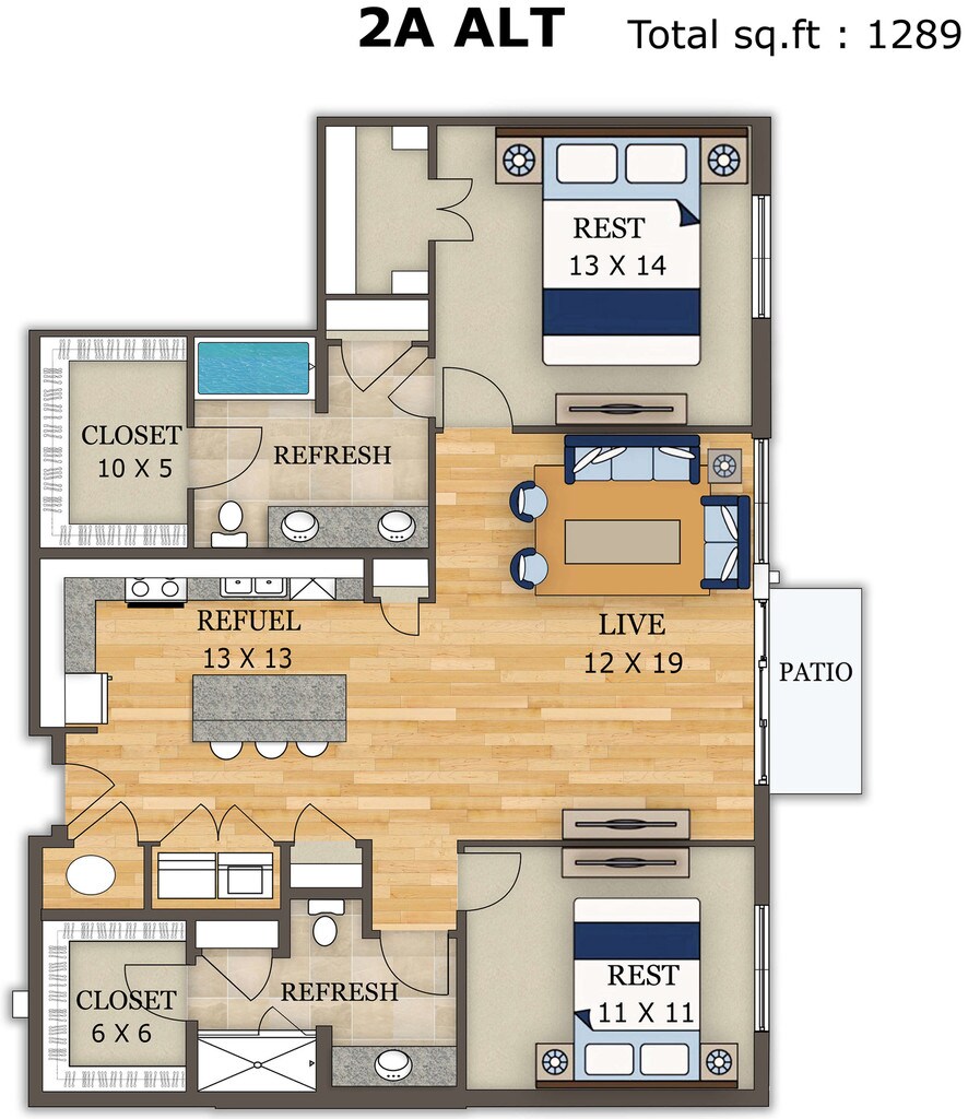 Apartment Model: 2A-ALT2 Bedroom, 2 Bath, 1289 sq ftUnavailable![]()