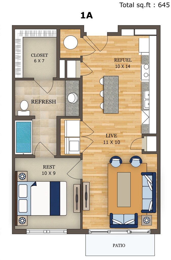 Apartment Model: 1A1 Bedroom, 1 Bath, 645 sq ftUnavailable1A - Floorplan 1 1B-ALT