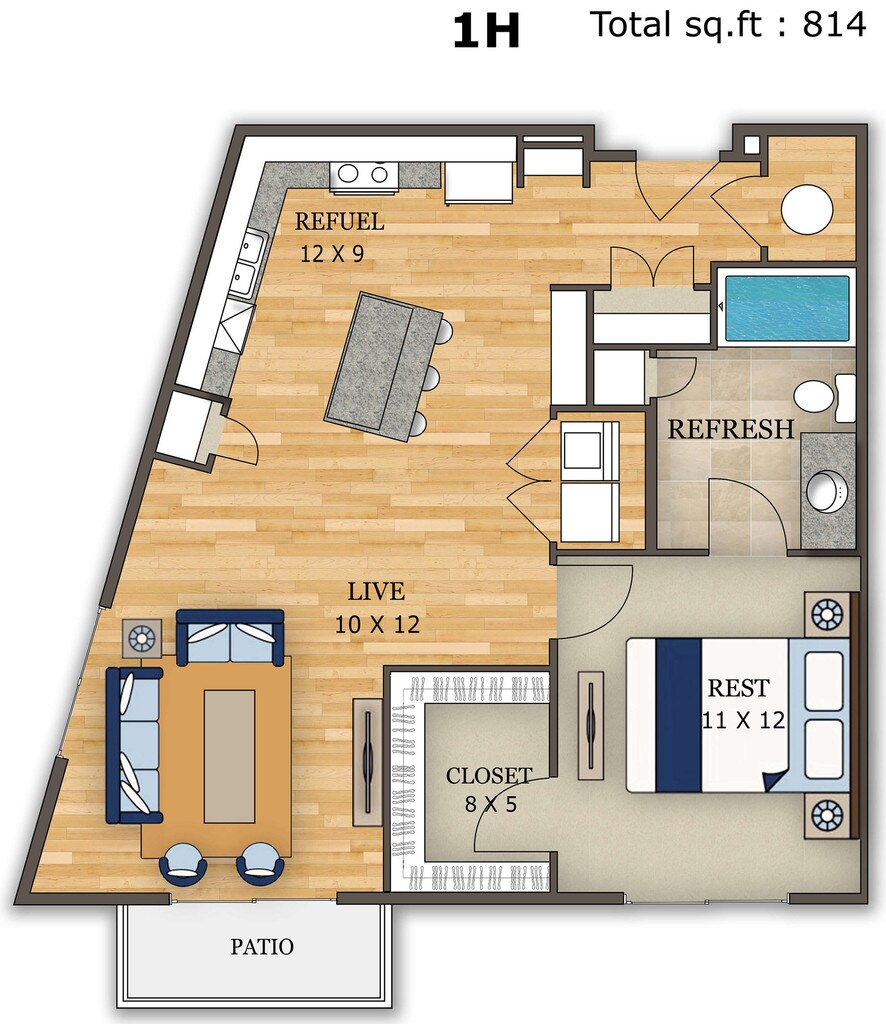 Apartment Model: 1H1 Bedroom, 1 Bath, 814 sq ftUnavailable![]()