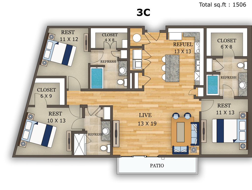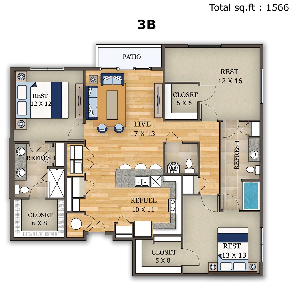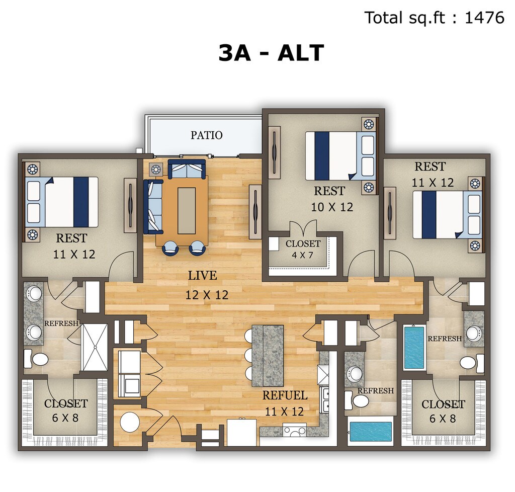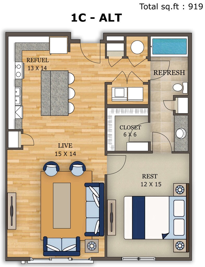 Apartment Model: 1C-ALT1 Bedroom, 1 Bath, 919 sq ftUnavailable![]()