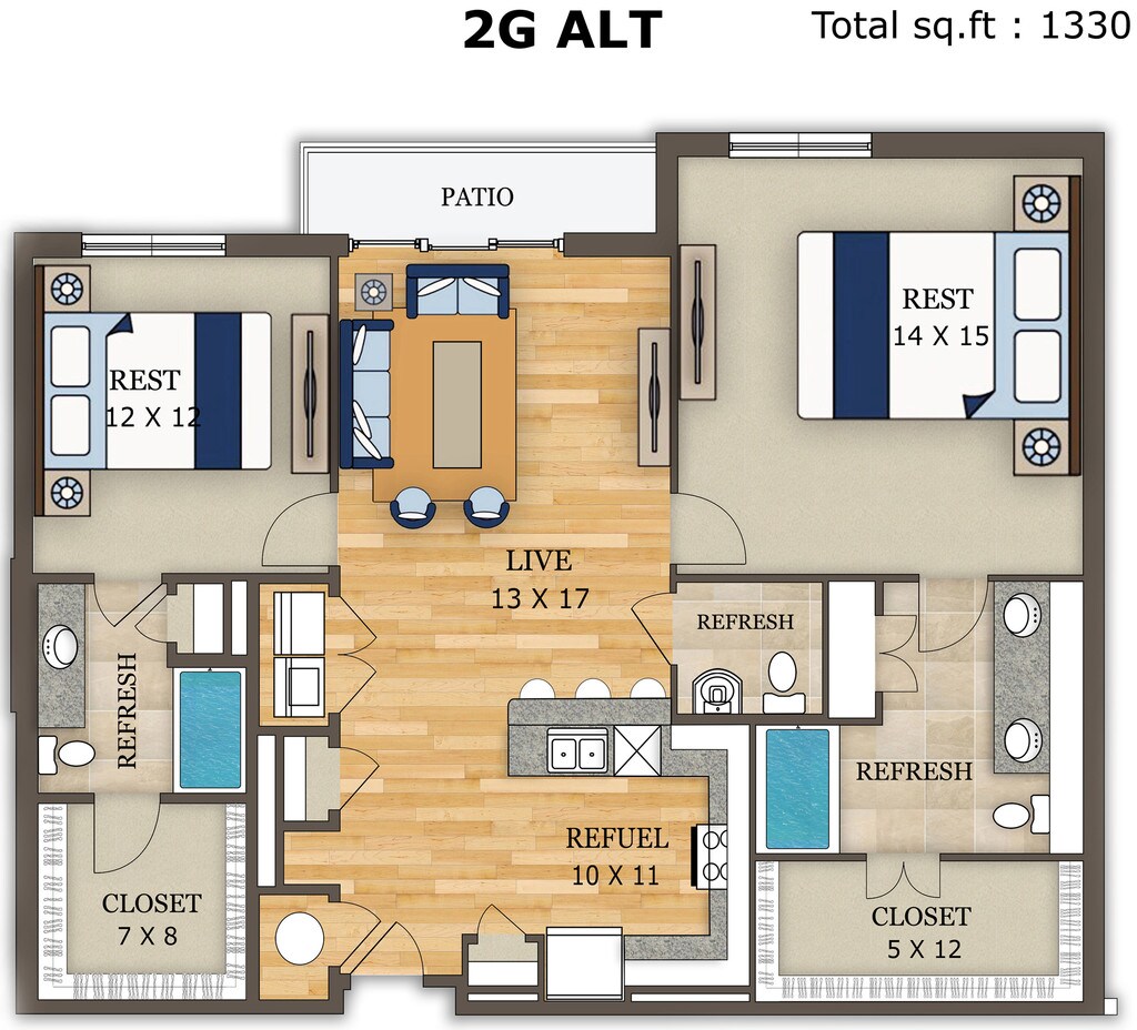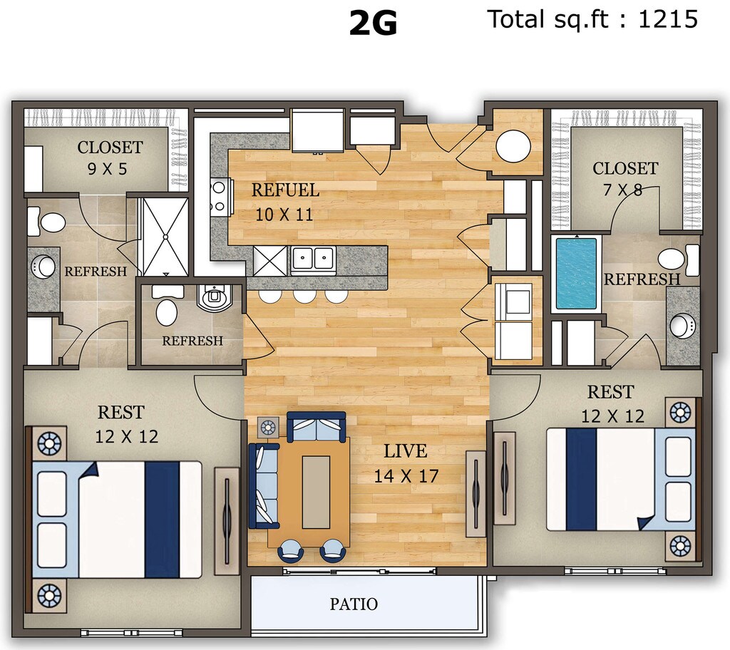 Apartment Model: 2G2 Bedroom, 2 Bath, 1215 sq ftUnavailable![]()