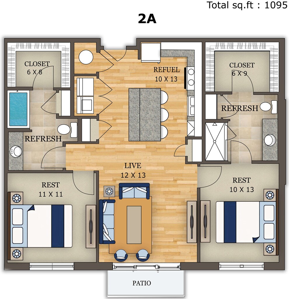 Apartment Model: 2A2 Bedroom, 2 Bath, 1095 sq ftUnavailable![]()