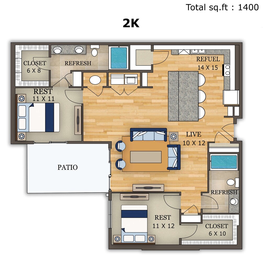2 Beds, 2 Baths, 1157 sq ftModel Gallery