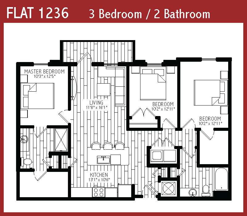 Apartment Unit: 207Apartment Model: 3 Bedroom, 2 Bath$2,0863 Bedroom, 2 Bath, 1266 sq ftAvailable Now$2,047