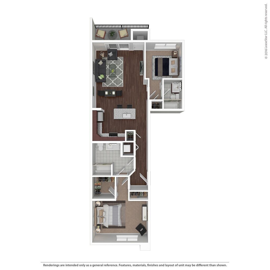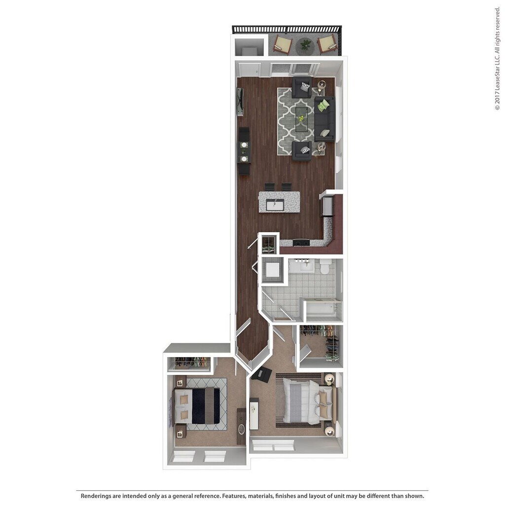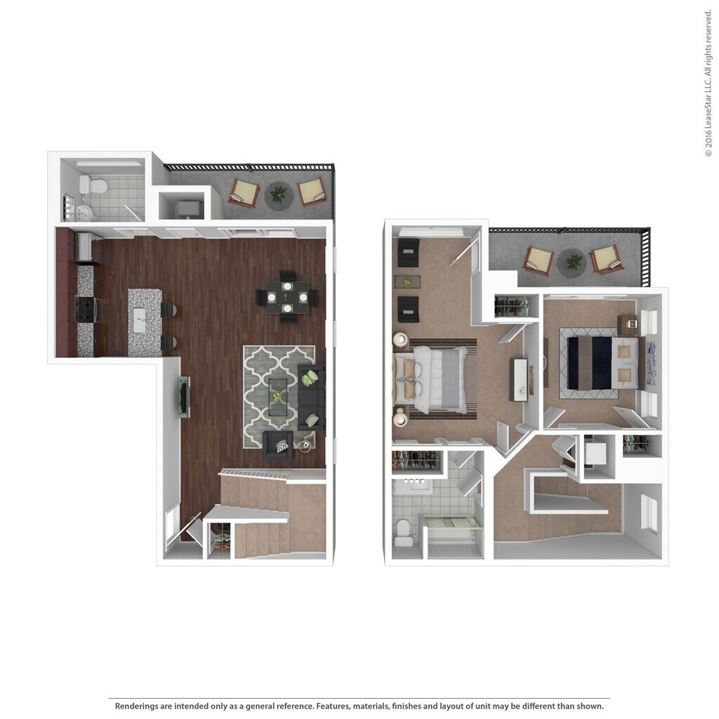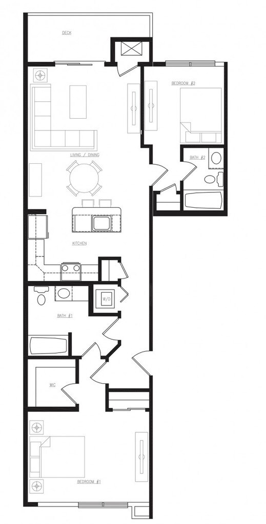 The Flats | 1 Bd 1 Ba 874 SF - Floorplan 4 2 Bedrooms