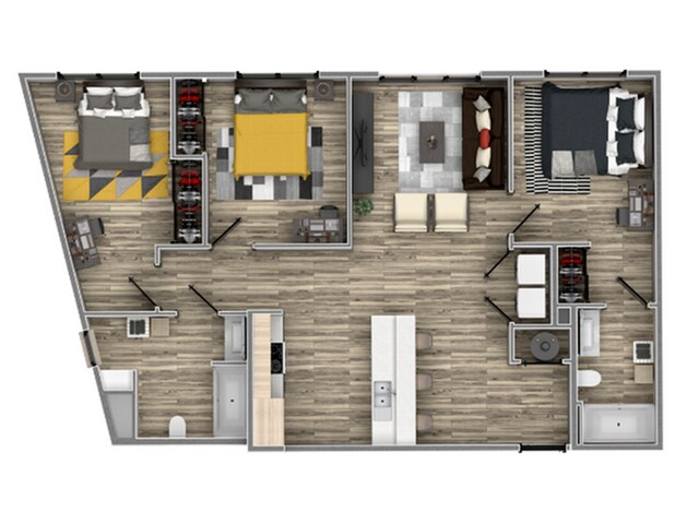 Apartment Model: 2X2From $9992 Bedroom, 2 Bath, 756-821 sq ftAvailable NowFloorplansPhotos![]()
