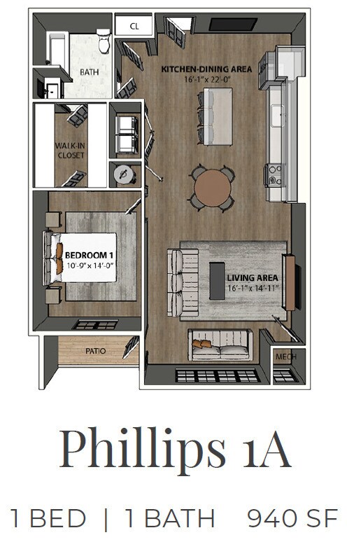 Apartment Model: 1A - Phillips 1FFrom $1,5951 Bedroom, 1 Bath, 940 sq ftAvailable Now![]()