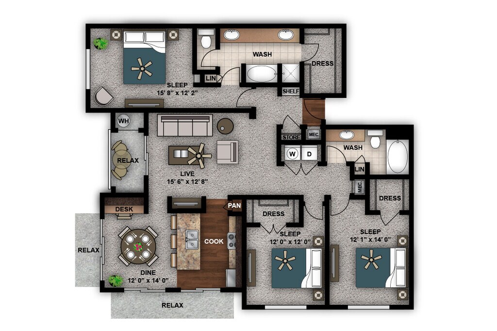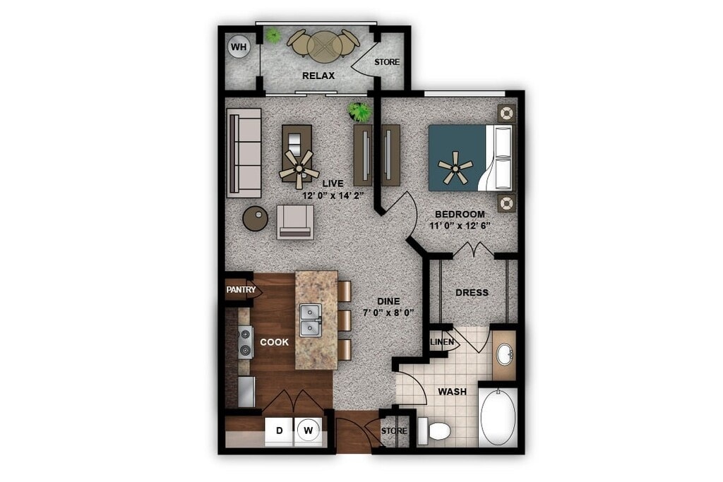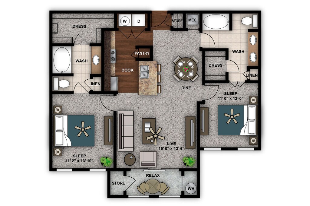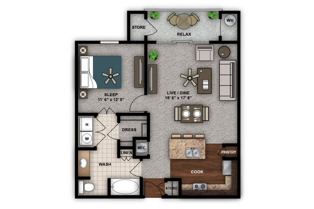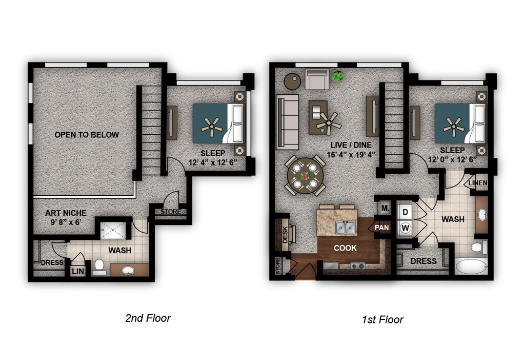 1 Bed, 1 Bath, 692 sq ftAvailable NowModel Gallery