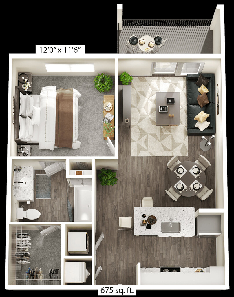 1 Bed, 1 Bath, 675 sq ftModel Gallery