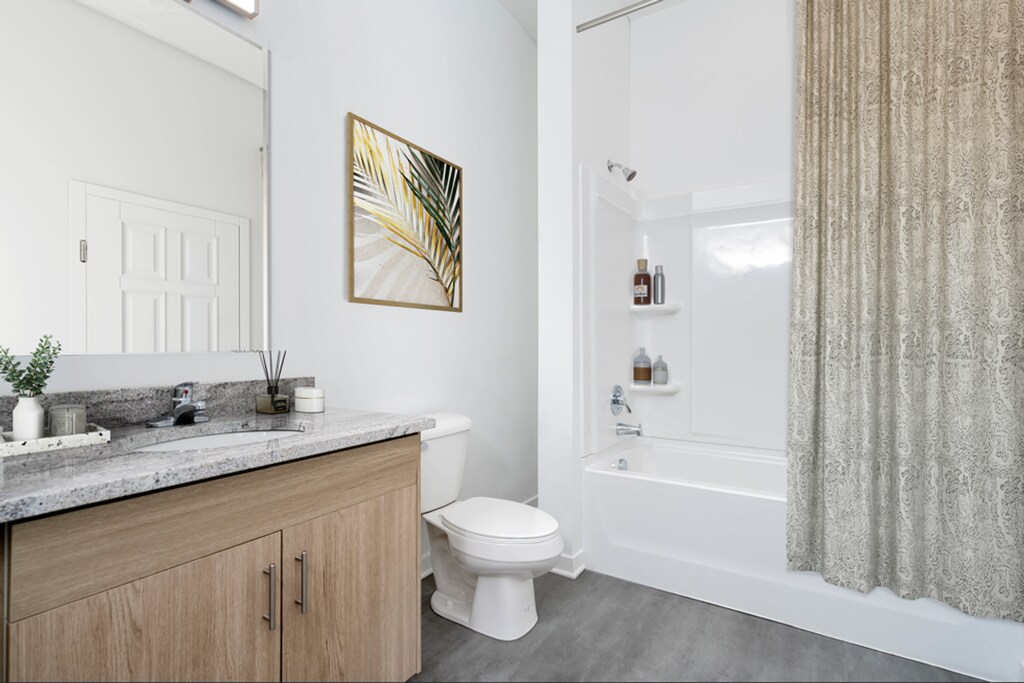 - Unit Description- Powell living just got a little more exciting! The Flats at Powell is located near local destinations, including many new retails shops and restaurants. Come check out this brand-new, first floor 2 bedroom, 2 bathroom garden style ADA accessible apartment with its own private patio. Modern touches and finishes like dark wood cabinetry, granite countertops, stainless appliances and in-unit laundry make the ideal blend of comfort and ease. The carefully constructed ADA layout gives thought to lower height cabinetry, bathroom grab bars, wider door ways, easily accessible appliance controls, laminate wood flooring, pendant lighting and a large bathroom. No need to worry about traffic when you can work up a sweat without ever leaving the community by enjoying a full workout at our convenient onsite gym, relaxing in the infrared sauna or taking on a new hobby playing Pickleball on our state-of-the-art court. In a rush in the mornings? No worries, stop by the resident center and grab a complimentary coffee or latte on your way out! The Flats at Powell is more than just a place to live; it's an energetic and welcoming retreat where residents truly thrive and you’ll find that living here is near everything you need. We invite you to experience the superior lifestyle and schedule a tour to discover why we're the perfect place to call home. - Model Rent and Fees- Price- $1,600