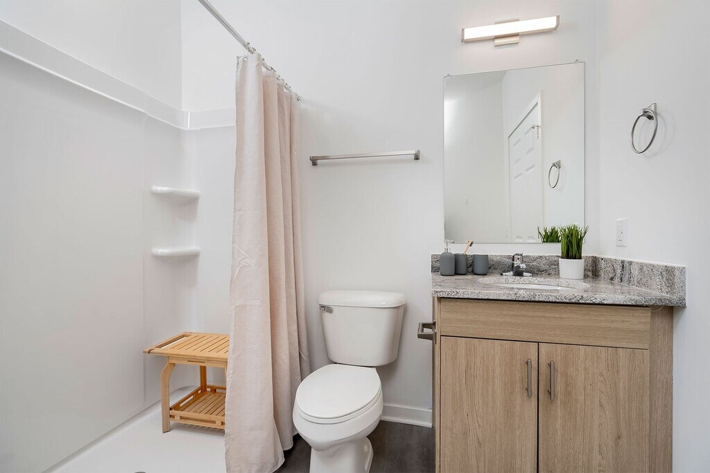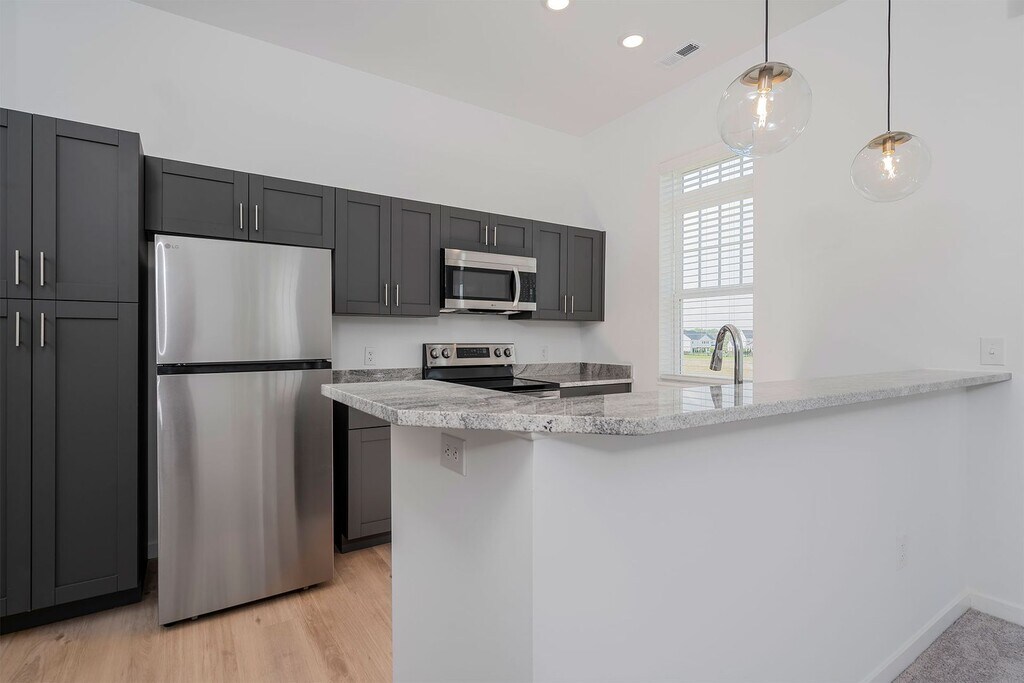 - Unit Description- Powell living just got a little more exciting! The Flats at Powell is situated within the Olentangy School district and located near local destinations, including many new retails shops and restaurants. Come check out this brand-new first floor 1 bedroom, 1 bathroom garden style ADA accessible apartment with its own private patio. Modern touches and finishes like dark wood cabinetry, granite countertops, stainless appliances and in-unit laundry make the ideal blend of comfort and ease. The carefully constructed ADA layout gives thought to lower height cabinetry, bathroom grab bars, wider door ways, easily accessible appliance controls, laminate wood flooring, pendant lighting and a large bathroom. No need to worry about traffic when you can work up a sweat without ever leaving the community by enjoying a full workout at our convenient onsite gym, relaxing in the infrared sauna or taking on a new hobby playing Pickleball on our state-of-the-art court. In a rush in the mornings? No worries, stop by the resident center and grab a complimentary coffee or latte on your way out! The Flats at Powell is more than just a place to live; it's an energetic and welcoming retreat where residents truly thrive and you’ll find that living here is near everything you need. We invite you to experience the superior lifestyle and schedule a tour to discover why we're the perfect place to call home. - Model Rent and Fees- Model Price Range- $1,250 - $1,350