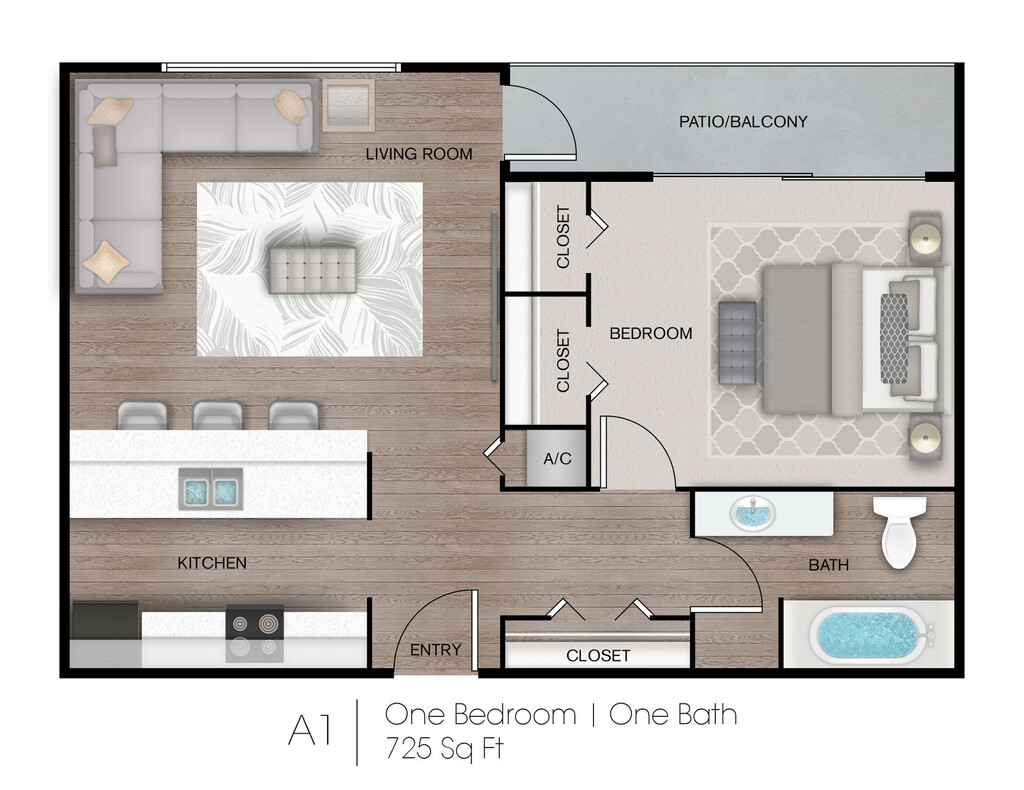 1 Bed, 1 Bath, 725 sq ftModel Gallery