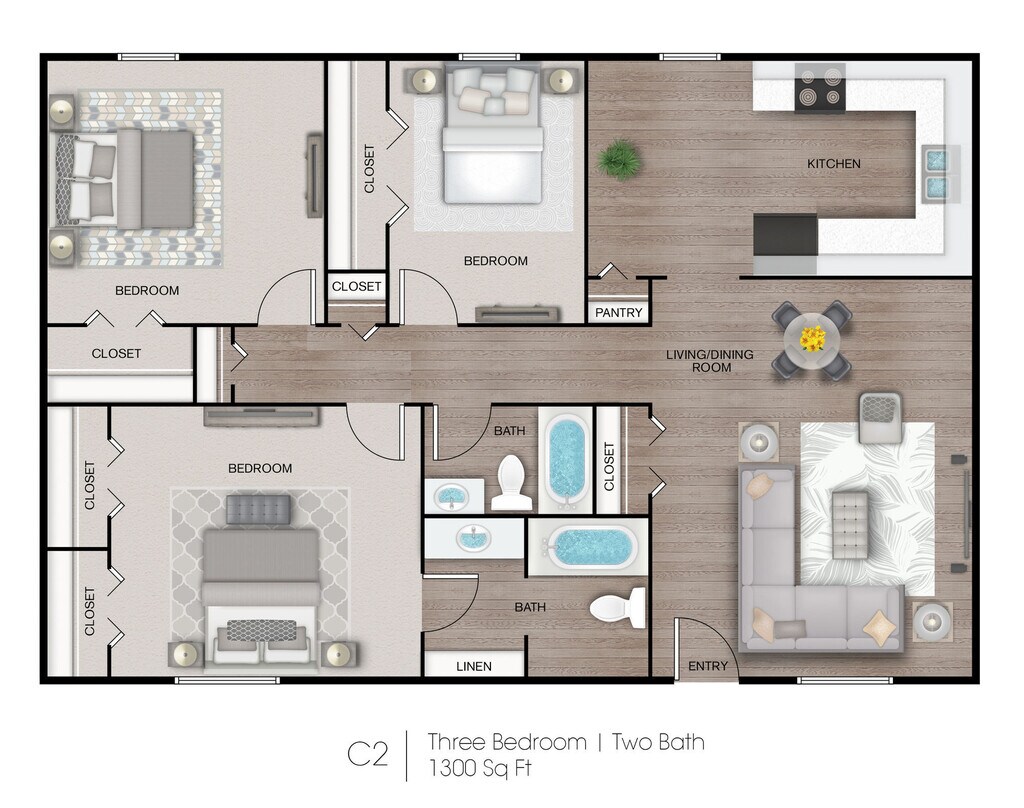 3 Beds, 2 Baths, 1300 sq ftModel Gallery