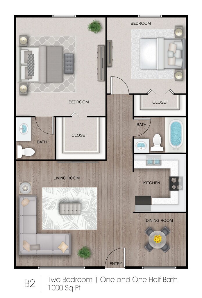 2 Beds, 1.5 Baths, 1000 sq ftModel Gallery