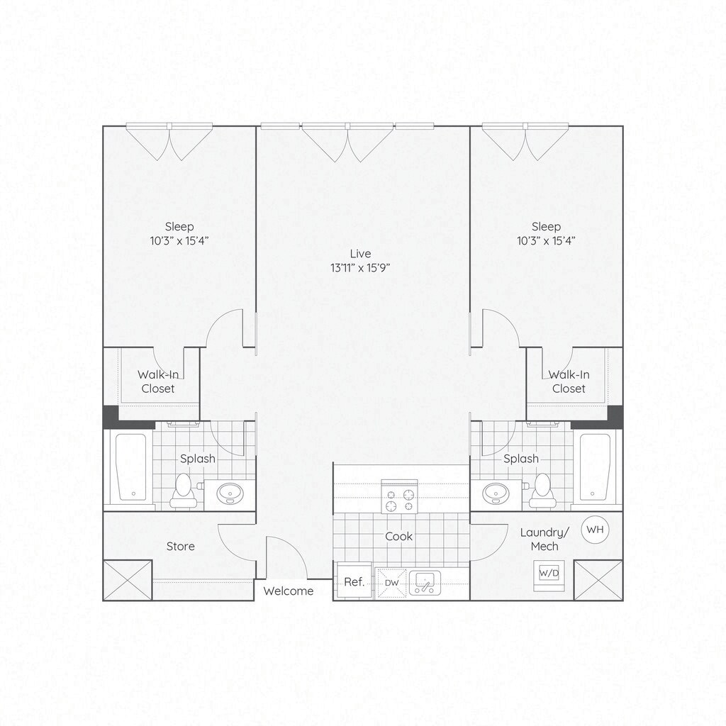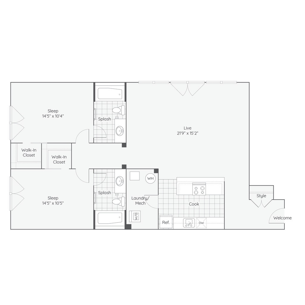 2 Bed 2 Bath - Floorplan 8 Apartment Unit: 256Apartment Model: 2 Bed 2 Bath$3,3052 Bedroom, 2 Bath, 1754 sq ftAvailable November 8, 2025![]()