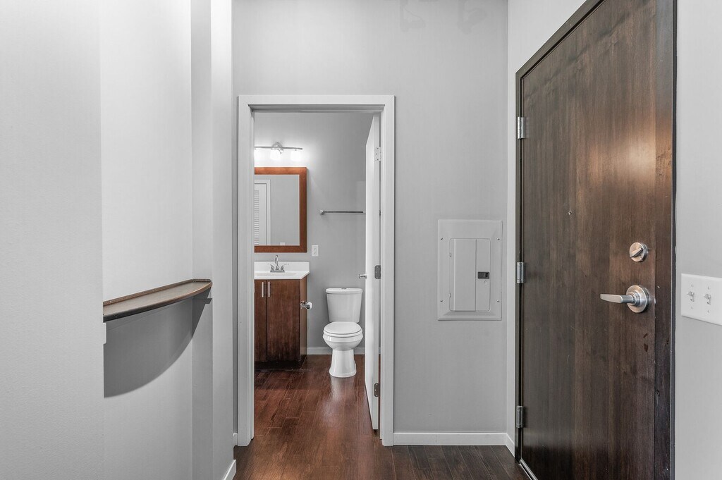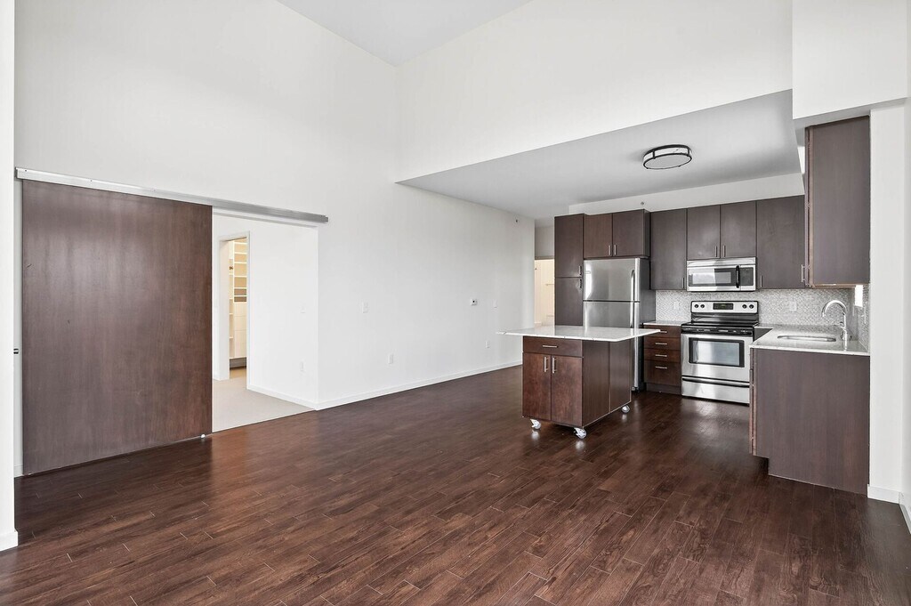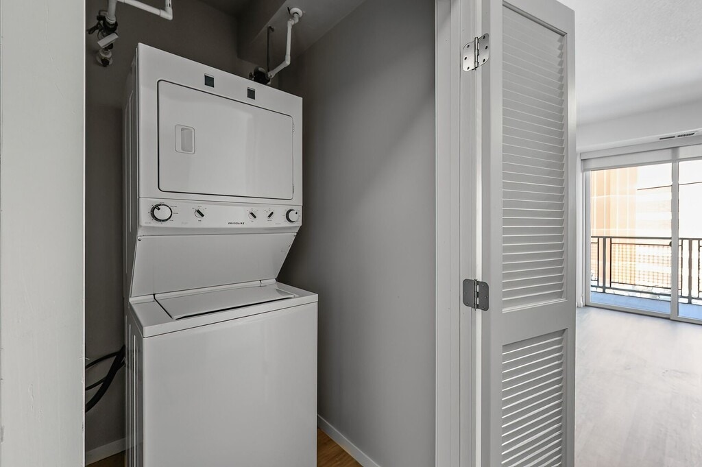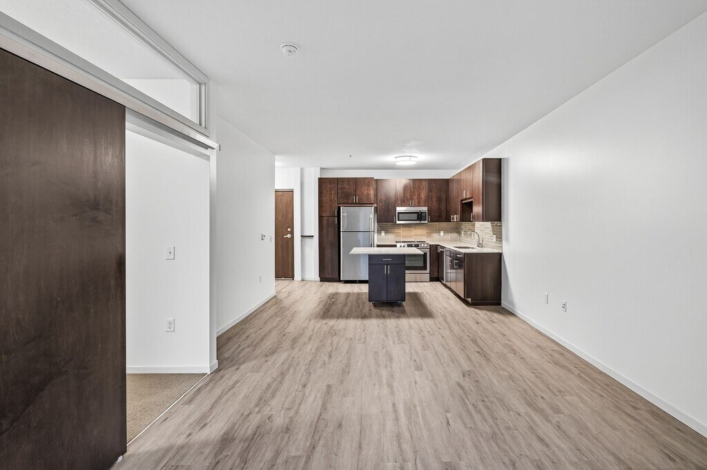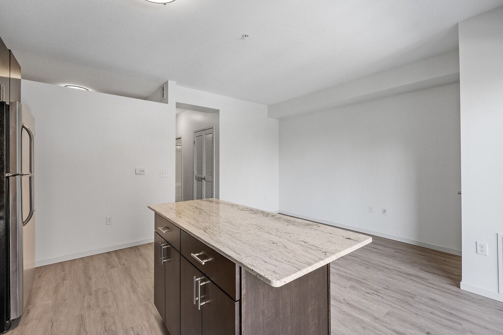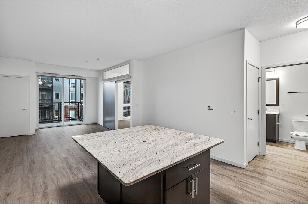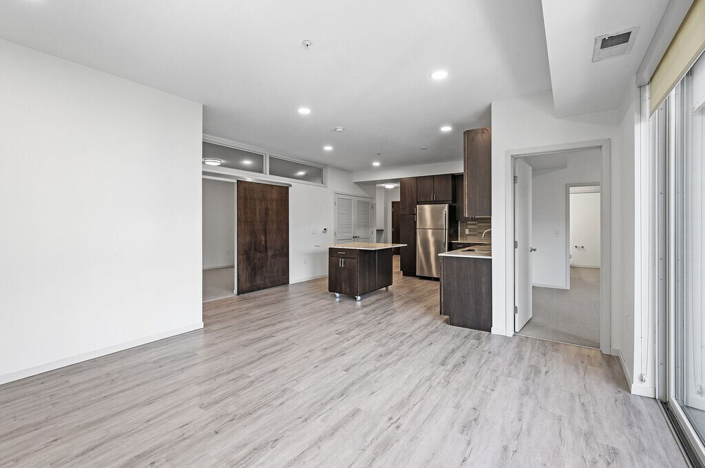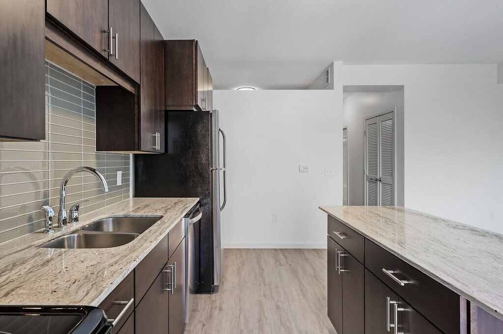 Experience contemporary luxury in this thoughtfully designed apartment, where sleek finishes and modern conveniences create the perfect place to call home. The open-concept kitchen is a statement of style and functionality, featuring rich espresso cabinetry, striking glass-tile backsplash, gleaming granite countertops, and a spacious kitchen island—perfect for cooking, entertaining, or casual dining. The high-end premium appliances package completes the space, blending seamlessly with the modern aesthetic. The sophistication continues with soft grey luxury vinyl plank flooring, offering both durability and elegance. Upgraded LED lighting enhances the ambiance, creating a bright and inviting atmosphere. Step into the airy living space, which flows effortlessly to a private east facing facing balcony, providing the perfect retreat for morning coffee or evening relaxation. Designed for effortless living, this apartment includes a walk-in bedroom closet for optimal storage and a stacked washer and dryer for ultimate convenience. Every element has been curated for modern comfort and timeless elegance. Don’t miss the chance to experience this elevated living space—schedule a tour of the Harley Modern Flat today!