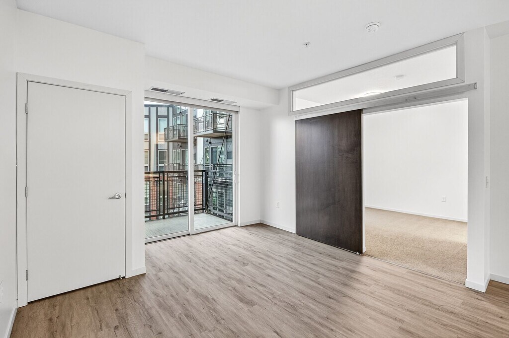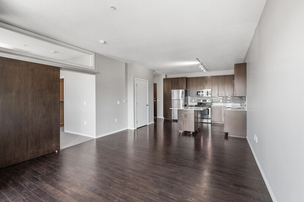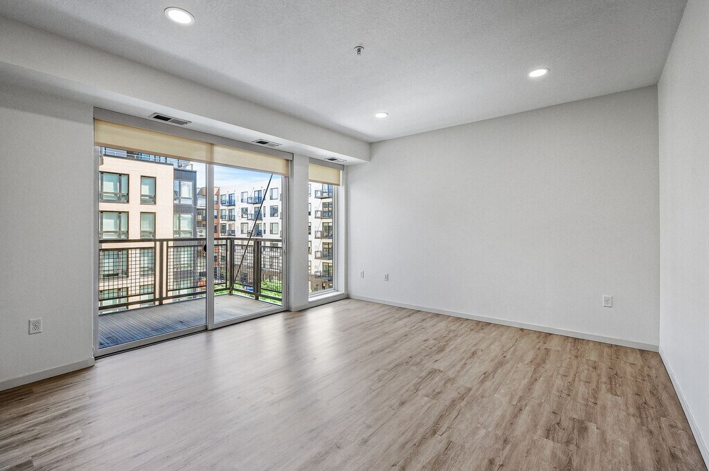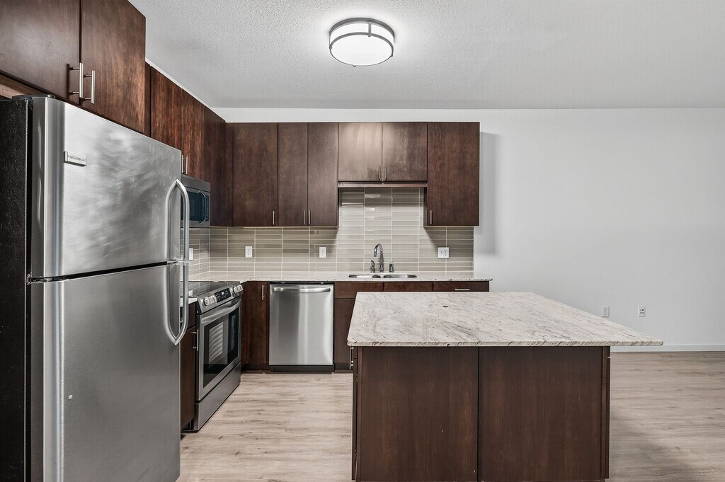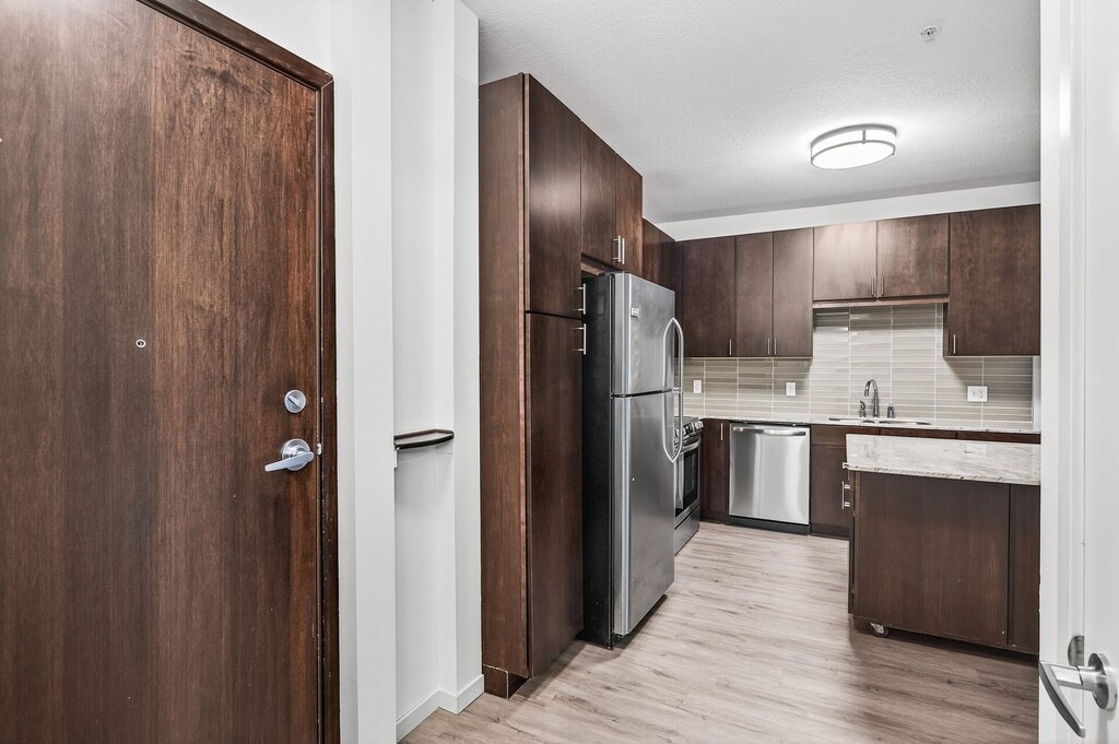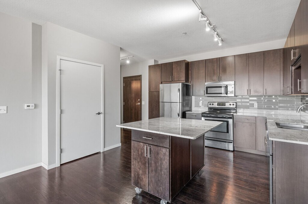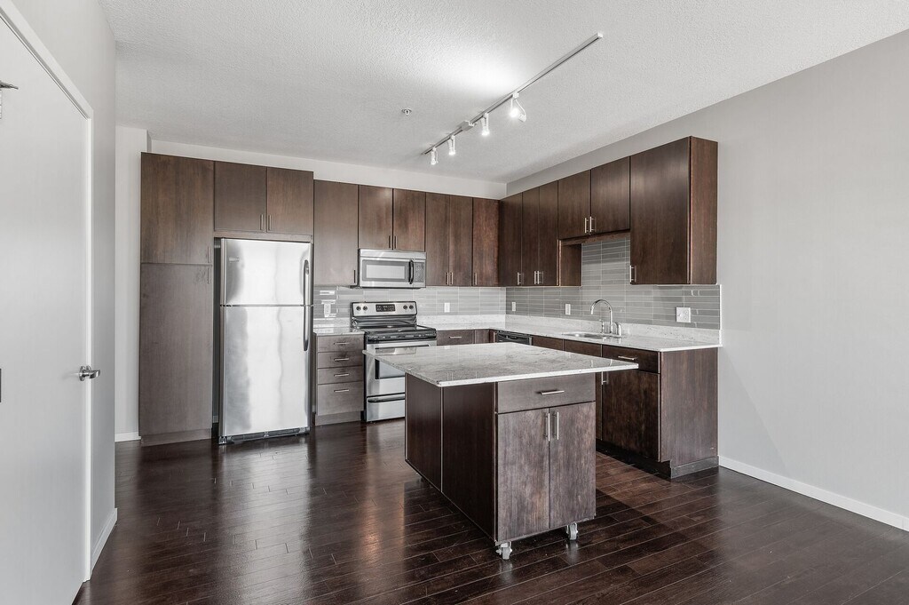 Experience contemporary luxury in this thoughtfully designed apartment, where sleek finishes and modern conveniences create the perfect place to call home. The open-concept kitchen is a statement of style and functionality, featuring rich espresso cabinetry, striking glass-tile backsplash, gleaming granite countertops, and a spacious kitchen island—perfect for cooking, entertaining, or casual dining. The high-end premium appliances package completes the space, blending seamlessly with the modern aesthetic. The sophistication continues with soft grey luxury vinyl plank flooring, offering both durability and elegance. Upgraded LED lighting enhances the ambiance, creating a bright and inviting atmosphere. Step into the airy living space, which flows effortlessly to a private northeast facing balcony, providing the perfect retreat for morning coffee or evening relaxation. Designed for effortless living, this apartment includes a custom-built bedroom closet for optimal storage and a stacked washer and dryer for ultimate convenience. Every element has been curated for modern comfort and timeless elegance. Don’t miss the chance to experience this elevated living space—schedule a tour of the Harley Modern Flat today!