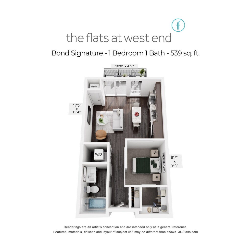 The Flats at West End offers 1 to 2 Bedroom apartments starting from $1,599 and having 539–1,093 sq ft. Here is the current pricing and availability:
