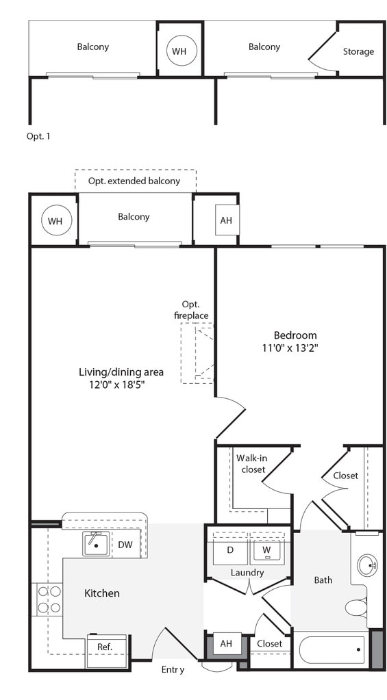 1A - Floorplan 1 Apartment Unit: 240Apartment Model: 1A$1,6111 Bedroom, 1 Bath, 590 sq ftAvailable NowFloorplan 1D