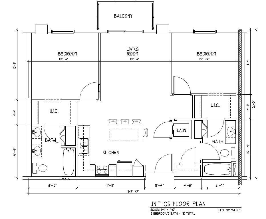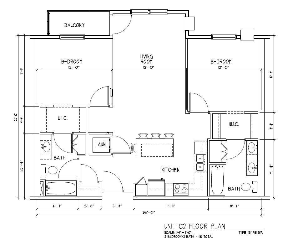 Two Bedroom One Bathroom - Floorplan 1 Two Bedroom Two Bathroom