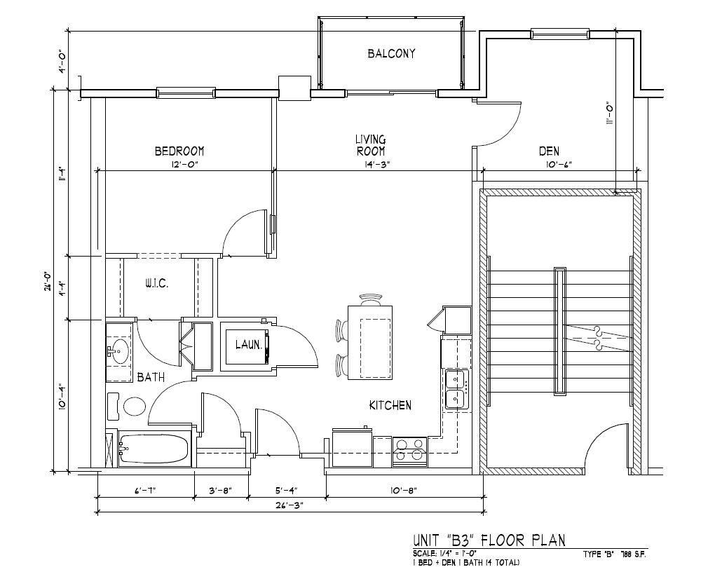 Price Availability Date Unit Sq Ft $1,210 Call for Availability One Bedroom One Bathroom W/Den 788 sq ft Model Amenities and Features