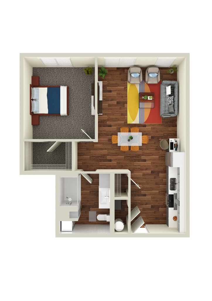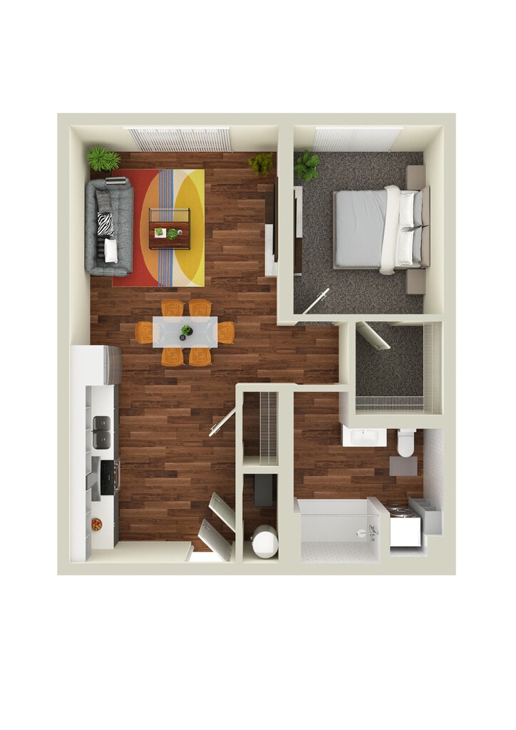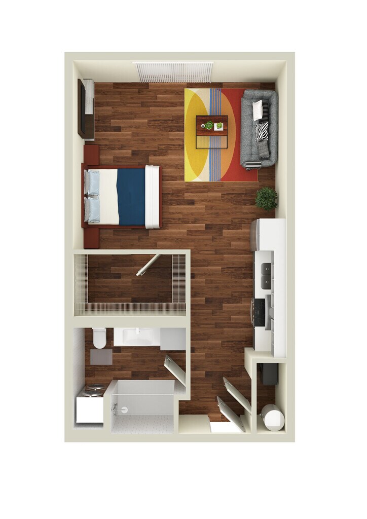 Studio, 1 Bath, 554-560 sq ftAvailable NowLargest StudioThis is the largest Studio at this PropertyModel Gallery