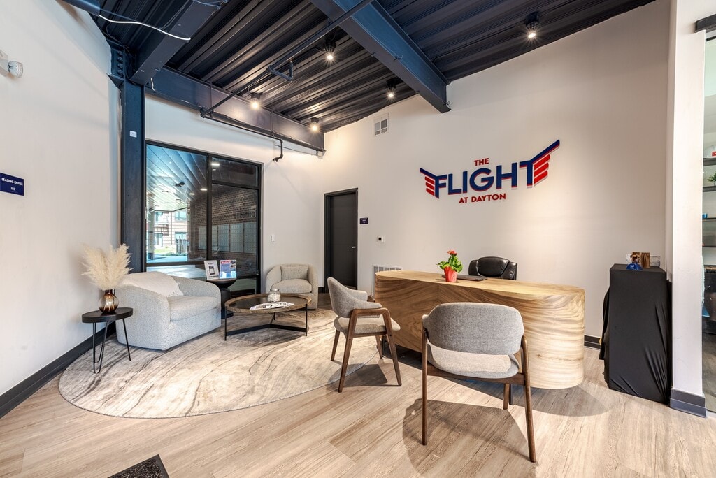The Flight at Dayton is the newest luxury community located in Dayton, OH, near Miami Valley Hospital. You will find a vast array of layout options across studio, 1, 2, 3, and 4-bedroom floor plans, perfect for students and young professionals. Our luxury, fully furnished apartments feature a gourmet kitchen with an island, in-unit washer & dryer, stainless steel appliances, high-speed Wi-Fi, and plenty more! Our residents come home to a luxury clubhouse and courtyard with a firepit, resort-style swimming pool, fitness center with a separate room for classes, resident lounge with billiards and foosball, and so much more! Contact us today to schedule a tour!