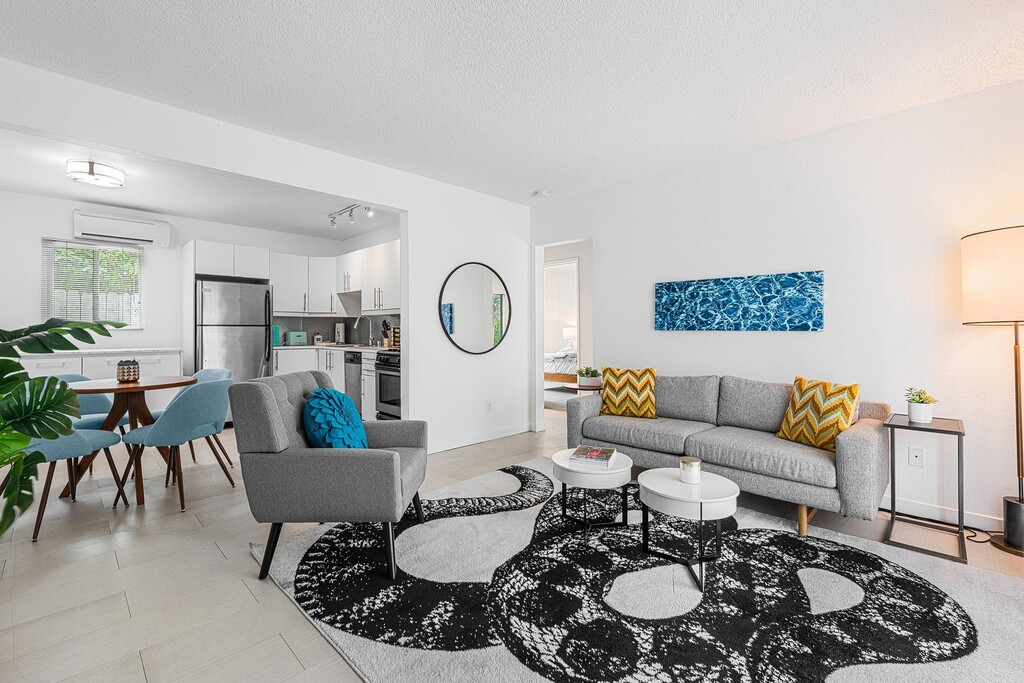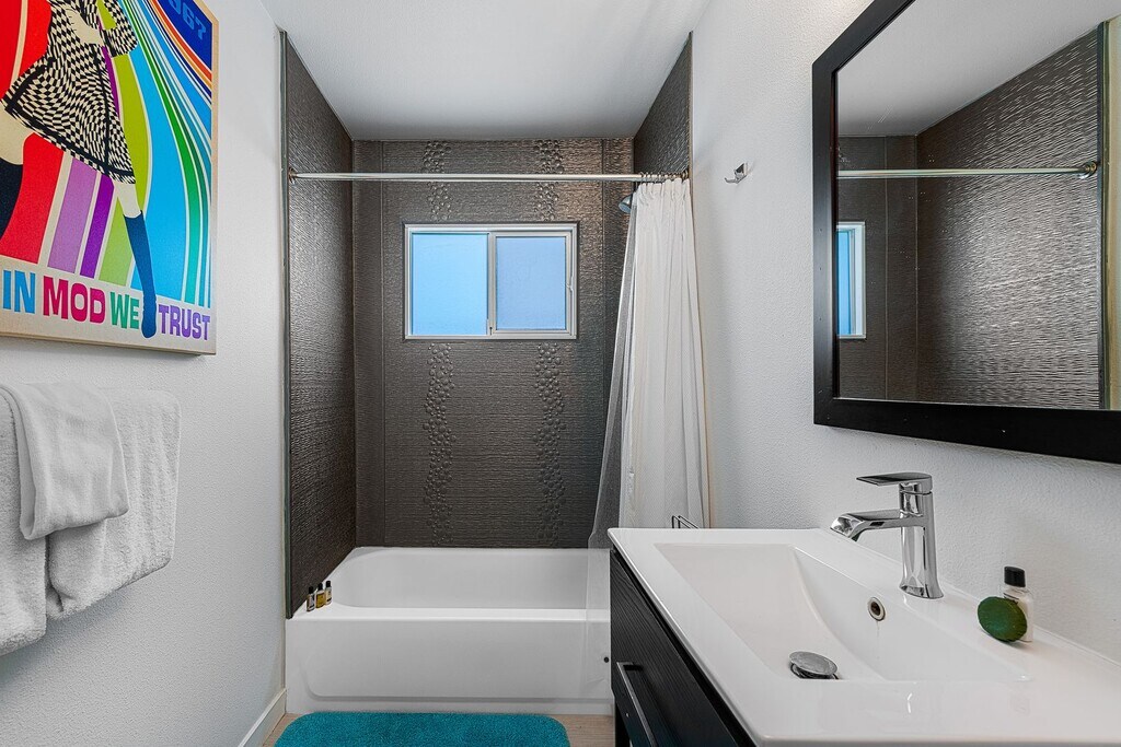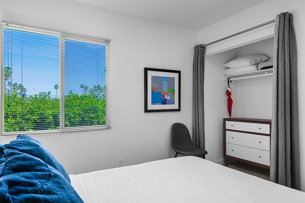 **Welcome to The Float** – A stylish, Mid-Century Modern gem nestled in the Deepwell section of South Palm Springs, where convenience meets elegance. This furnished one-bedroom, one-bath apartment is available for 30+ day corporate stays, with all utilities, internet, and cable included for a hassle-free experience. Enjoy newly renovated interiors with stunning views of the San Jacinto Mountains. Just a short walk or bike ride takes you to popular spots like the Smoke Tree Village Shopping Center, with Ralph’s supermarket, Koffi, Smokin' Burgers, Elmer’s, and more just five minutes away. **The Kitchen**: Modern and sleek, featuring ample cabinetry, a built-in microwave, dishwasher, refrigerator, and gas range. The faux metal backsplash complements the stainless steel appliances, creating a chic, cohesive look. **The Bathroom**: Clean and modern, with a bathtub/shower accented by faux metal walls, perfectly matching the kitchen’s stylish design. Each unit is equipped with an energy-efficient European-style mini-split heating and A/C system, and communal laundry facilities are just steps away. Unwind by the sparkling pool under vibrant blue umbrellas and swaying palm trees, all while soaking in views of the majestic San Jacinto Mountains. Originally the 1950s Hillcrest Manor, this building has been reimagined with a modern touch by the acclaimed H3K design team, blending history with uncompromising style and flair.