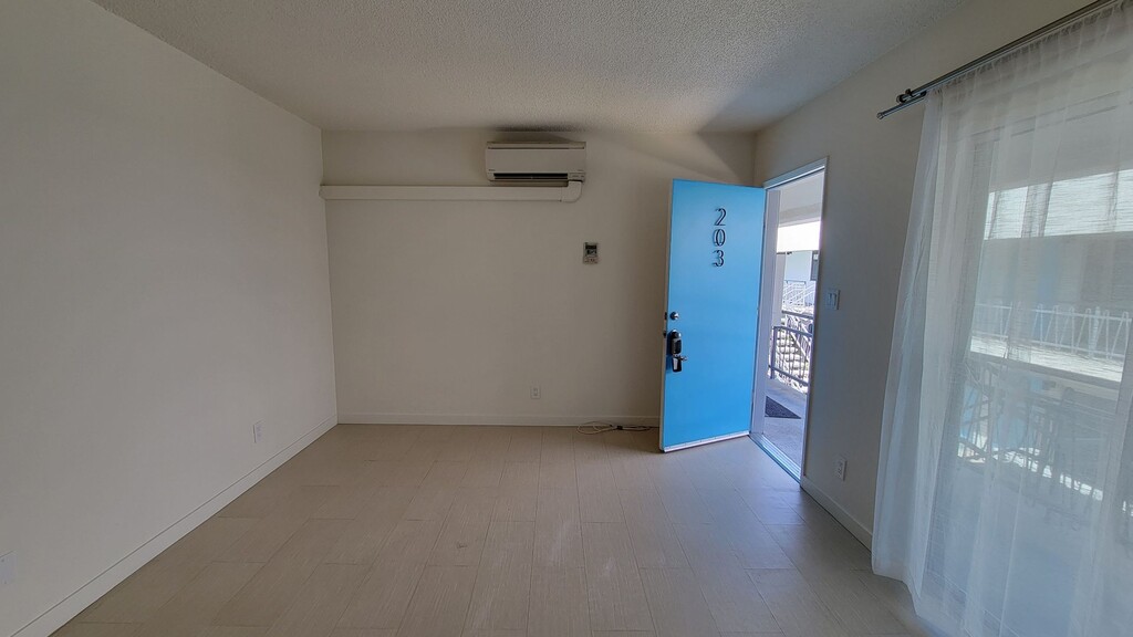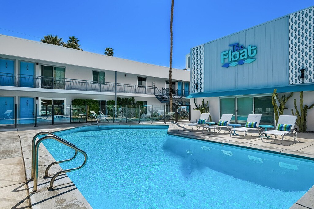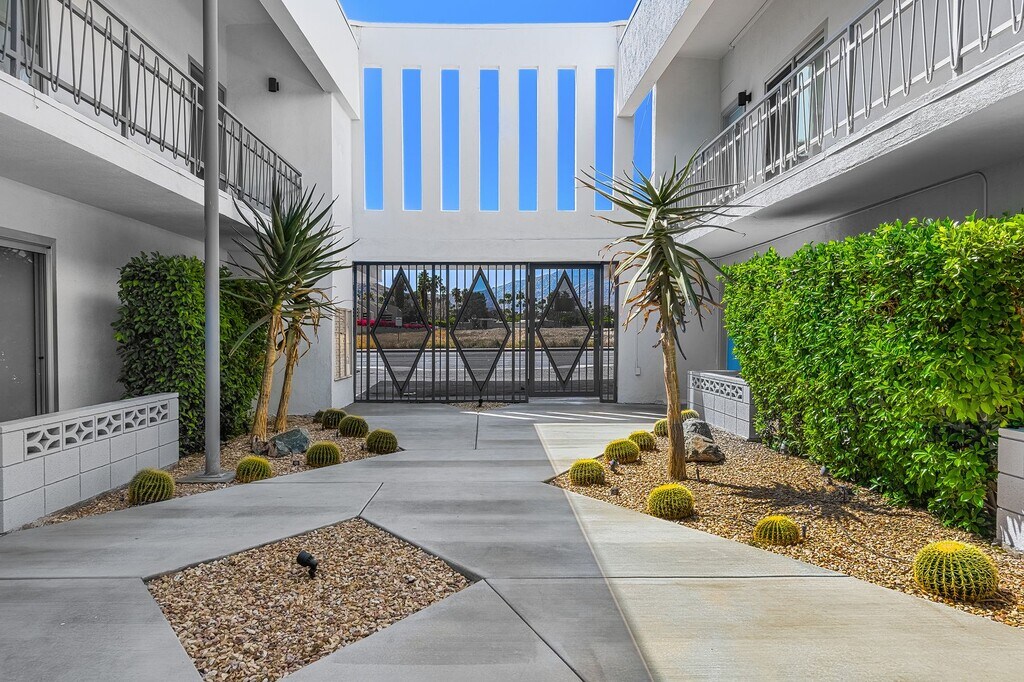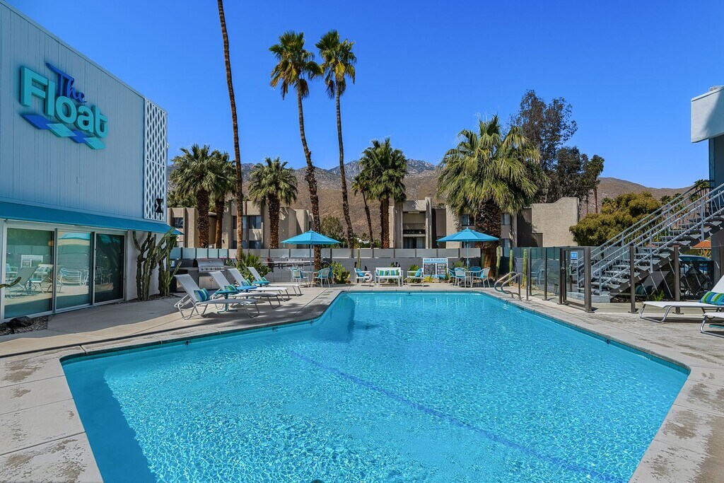 The Float is a Mid-Century Modern building located in the Deepwell Section of South Palm Springs, where convenience meets style! This is a one-bedroom, one-bath unfurnished unit. Newly renovated unfurnished units with views of the San Jacinto mountains. Walk or bike to popular restaurants and shops in the Smoke Tree Village Shopping Center. Ralph's supermarket, Koffi, Smokin' Burgers, Elmer's, banking, shopping and fast food restaurants are all within a short 5 minute walk. The kitchen: Modern style with plenty of cabinetry. Appliances include a built-in microwave, dishwasher, refrigerator, and gas range. A faux metal backsplash compliments the stainless steel appliances. The bathroom: Modern, sleek, and clean looks. Bathtub/shower features faux metal walls to tie in with the kitchen backsplash. Each unit has new energy efficient European-style mini-split heating and A/C system. A communal washer and dryer are just steps away. Relax by the glistening blue pool under vibrant blue umbrellas and green palm trees with San Jacinto mountain views. A building brought into the present with modern features, but with history as 1950's Hillcrest Manor. Each unit offers uncompromising style and flair having been reinterpreted by Palm Springs’ acclaimed H3K design team. *Please note that these photos are samples of our building style and the apartment does not come furnished. Tenants pay for cable, Internet and electricity.