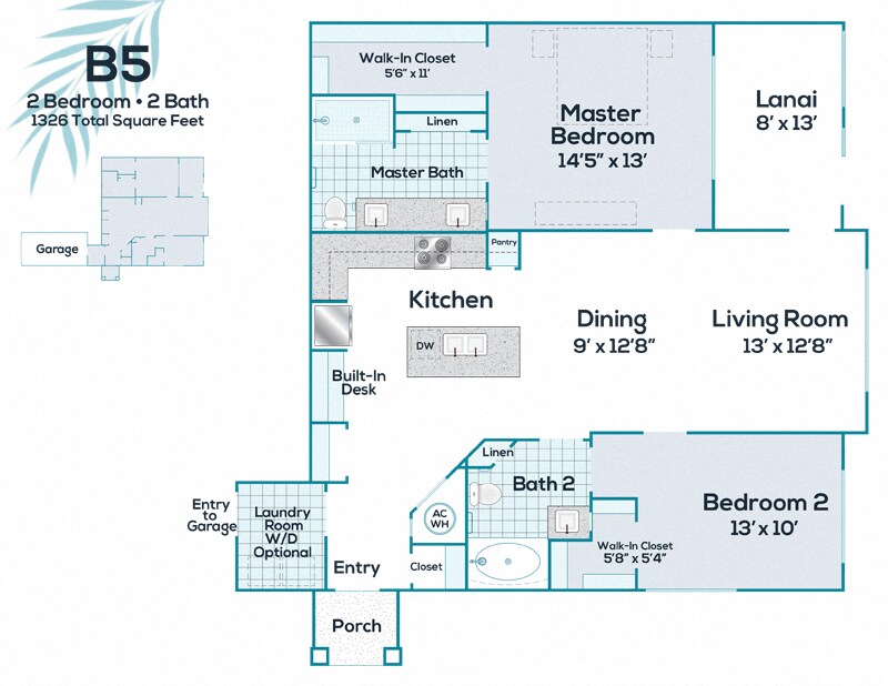 Apartment Model: B5From $2,2702 Bedroom, 2 Bath, 1326 sq ftAvailable NowFloorplansPhotos![]()