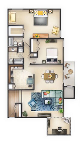 2 Beds, 2 Baths, 1200 sq ftAvailable NowModel Gallery