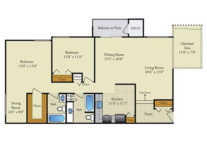 Apartment Model: The Norbeck + Den2 Bedroom, 2 Bath, 1200 sq ftAvailable Now![]()