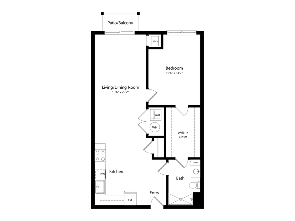 Studio, 1 Bath, 608 sq ftLargest StudioThis is the largest Studio at this PropertyModel Gallery